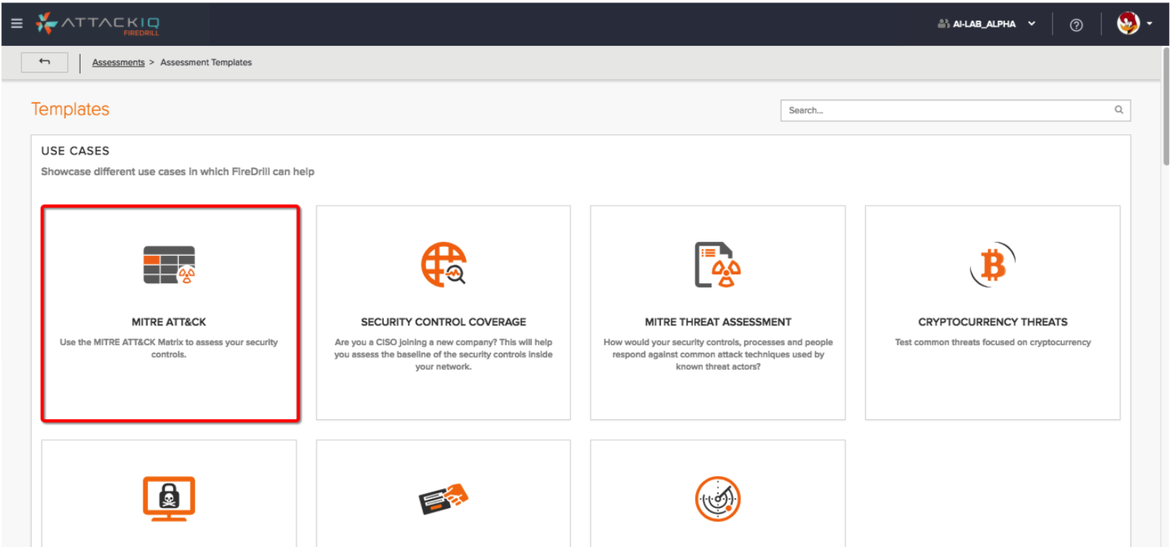 1) Create your assessment using the MITRE ATT&CK template in FireDrill and add assets to test against