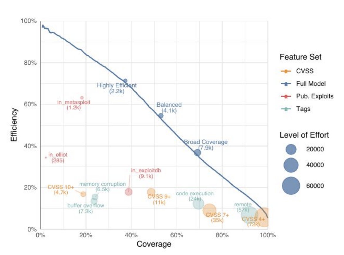 The authors conclude by melding multiple heuristics like the two described here with a machine learning model to come up with a recommendation engine for vulnerability management. They extract features from different classifications of these vulnerabilities and combine them in a decision tree that gives a score representing the likelihood of the vulnerability being exploited. They use a popular gradient boosting library called XGBoost to optimize the decision tree and the graph below sums up the results.