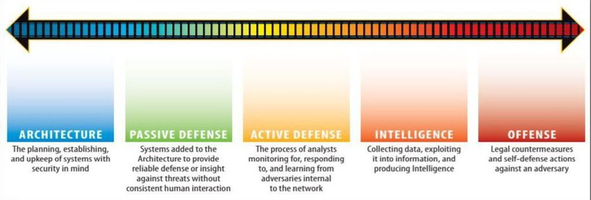 | Passive Defense | “systems added to the architecture to provide consistent protection against or insight into threats without constant human interaction” [1]