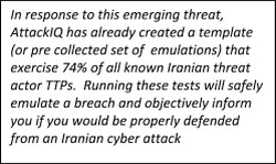 AttackIQ’s automated platform is already populated with safe, ready-to-run-out-of-the-box emulations of 74 percent of these groups’ 114-plus published TTPs. With an automated platform that safely emulates attacker behavior on real production systems your business runs on, you can, at will, exercise your security capability just as the attacker would, BEFORE YOU’RE TARGETED or worse, BREACHED.