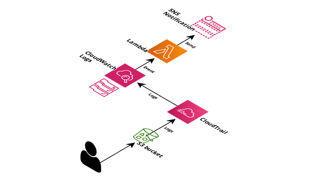 Firstly, logs will be enabled in the monitored S3 bucket and sent to CloudWatch Logs through CloudTrail. At this point, access logs to this S3 bucket will be stored in a Log Group into the CloudWatch Logs service.