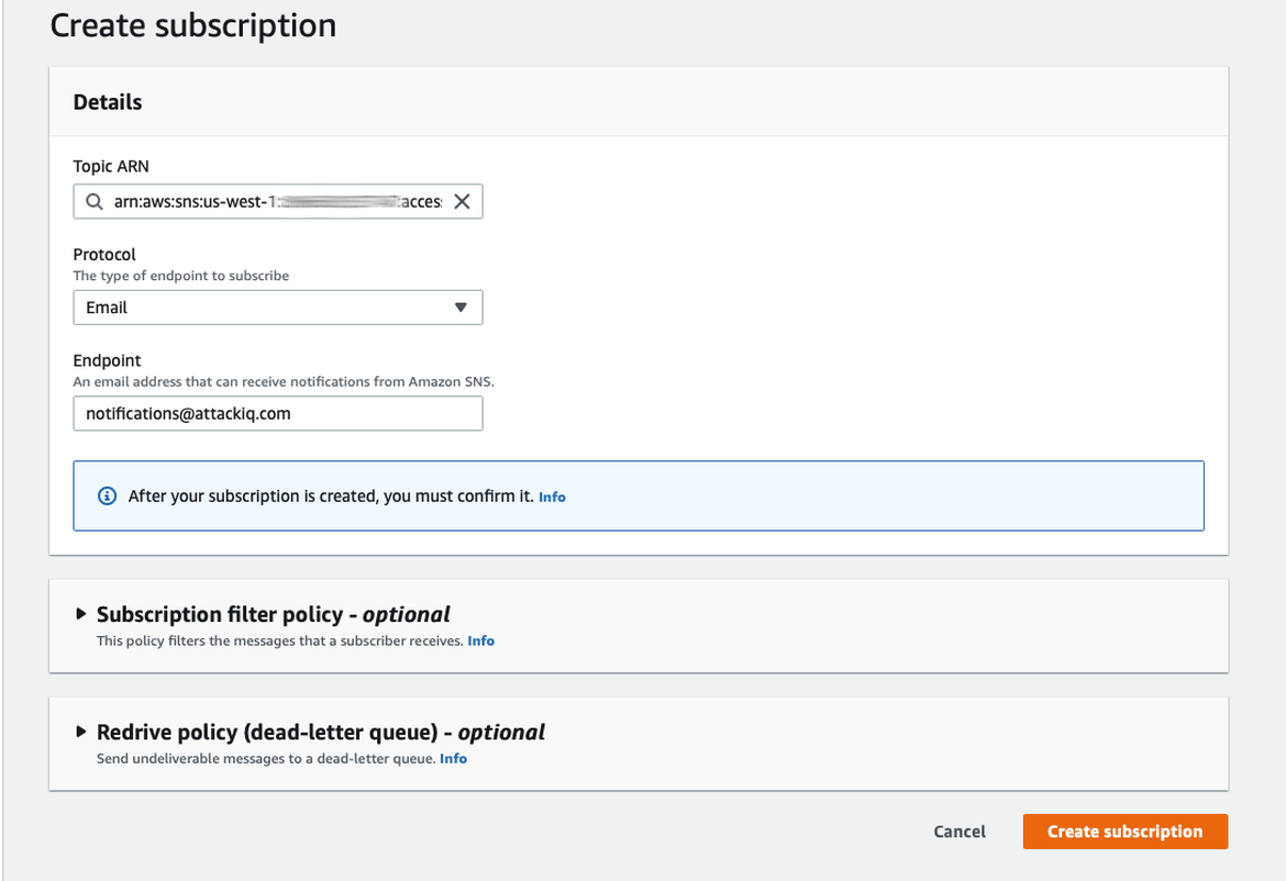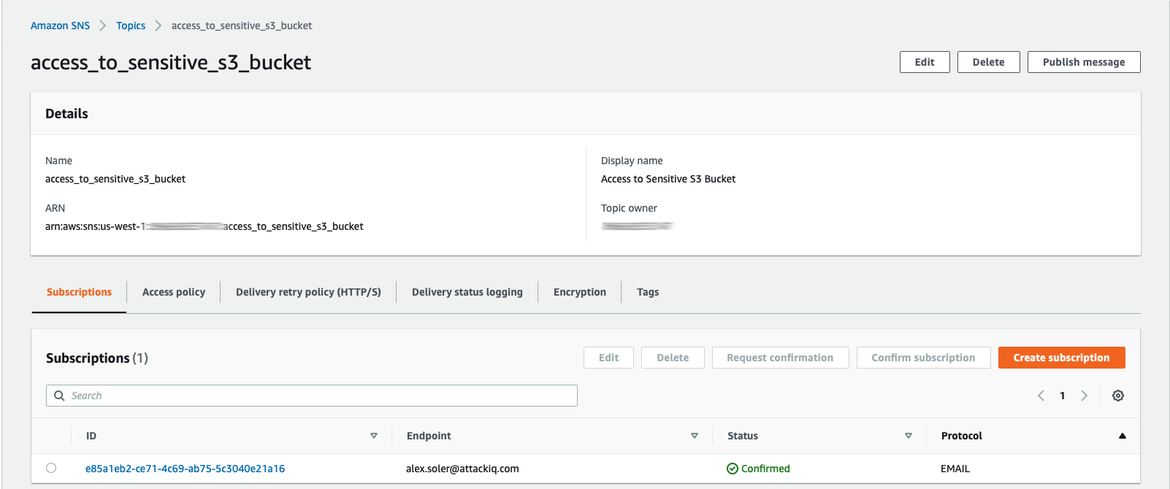 Subscription to SNS topic