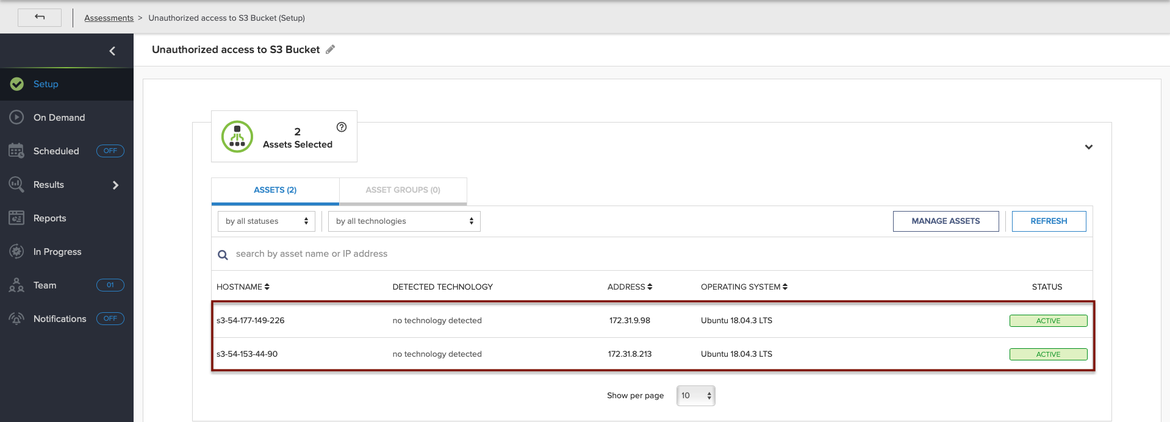 Thus, we have an assessment configured with two EC2 instances deployed in our target AWS account. These EC2 instances have an instance profile attached (or role) in order to have permission to access our monitored S3 bucket.