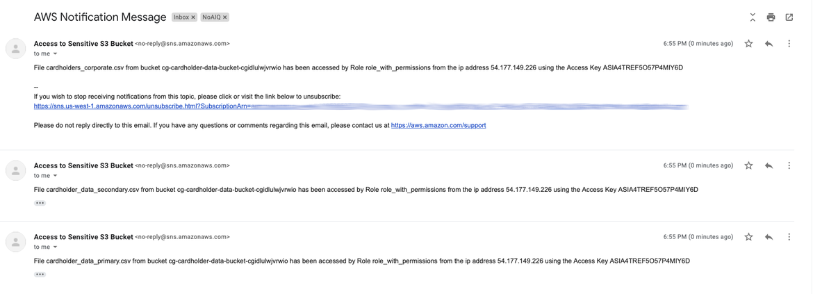 However, we have received a notification where it shows all the unexpected accesses that happened in our monitored S3 bucket, specifically to those files having the word “cardholder” in its filename (and only them).