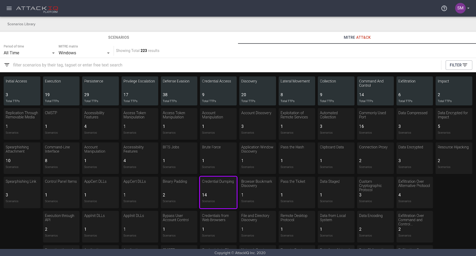 The platform offers a wide variety of pre-built scenarios that cover many of the TTPs specified in the MITRE ATT&CK matrix.