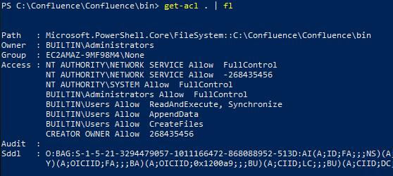 Note the improper permissions, BUILTIN\Users Allow *, on the installation directory, which are inherited from the drive root. This gives any local user the ability to create arbitrary files in the installation directory, which we can then leverage in a DLL hijacking attack.