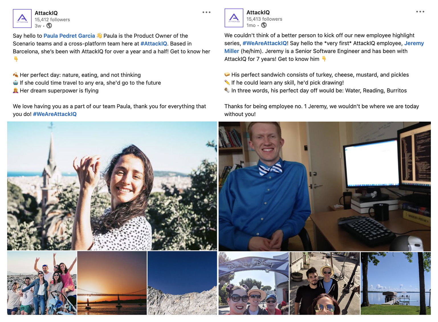 - Sharing our employee stories and giving a glimpse into their world through our #WeAreAttackIQ posts on social media. (You can see them on our LinkedIn or Twitter feeds!)