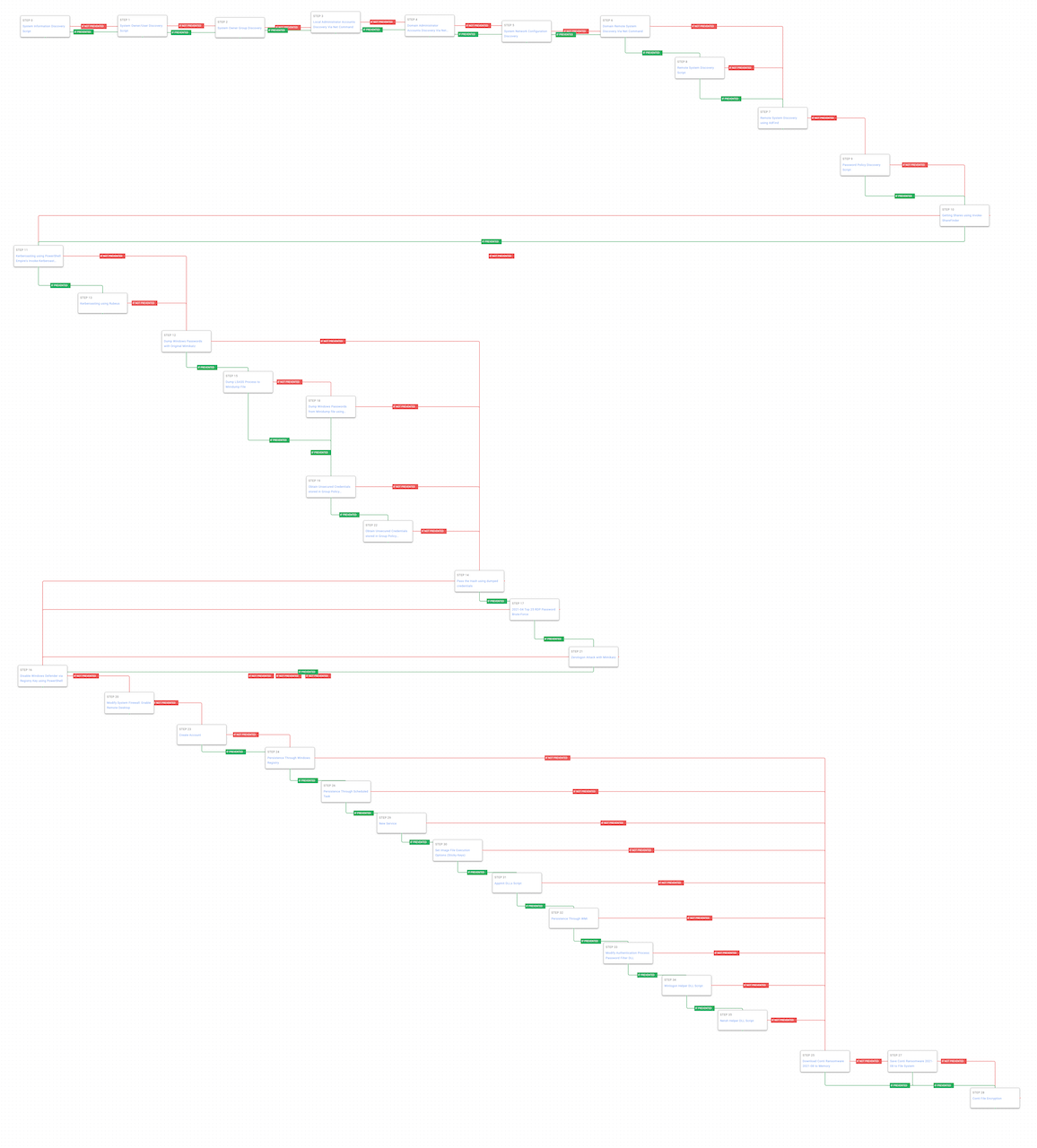 Steal or Forge Kerberos Tickets – Kerberoasting (T1558.003): Kerberoasting allows an attacker to attempt to extract password hashes for accounts using their Service Principal Name (SPN) ticket. The attack graph first tries using the Invoke-Kerberoast PowerShell cmdlet and if prevented tries using Rubeus.