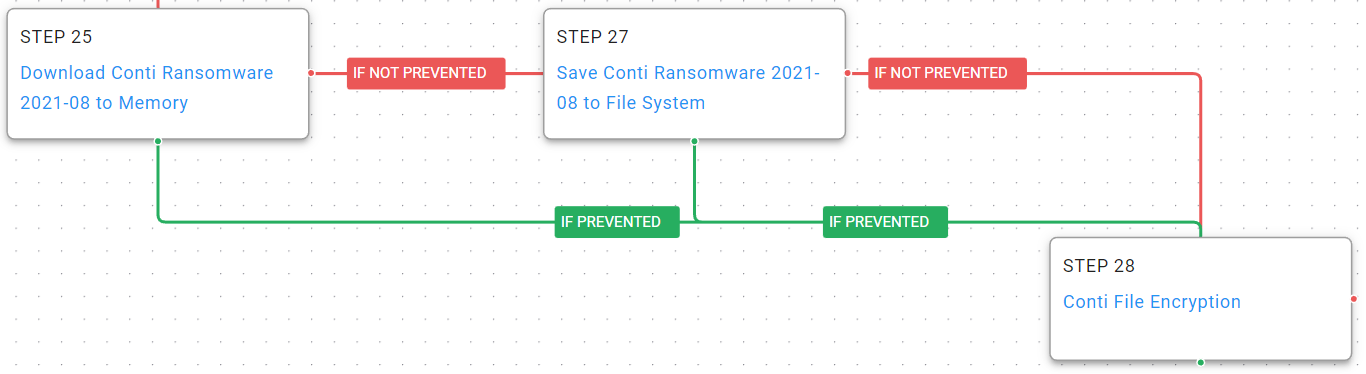 During its run, the Conti operation experienced a total of three revenge-based leaks of various combinations of source code, chat logs and technical manuals from insiders, with the last leak entangled in geopolitics surrounding Russia’s invasion of Ukraine. The second leak of source code, tools, post-compromise technical manuals and training manuals on August 5, 2021, is the one on which AttackIQ’s new attack graph is based due to the fidelity of information available from that leak, particularly in the post-compromise technical manuals used by the ransomware operators. This attack graph emulates the actor’s full attack life cycle to help customers validate their security posture against similar attacks.