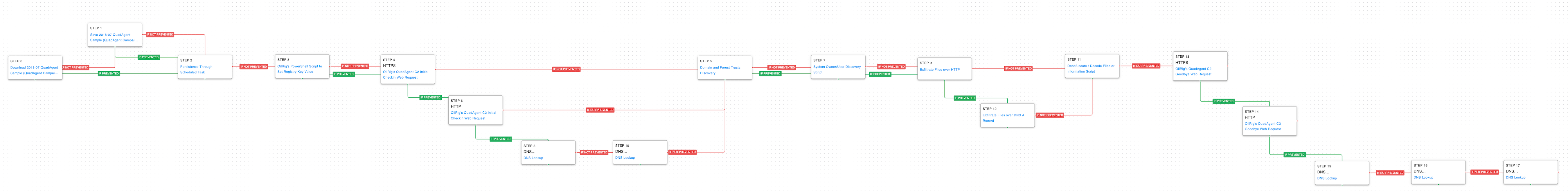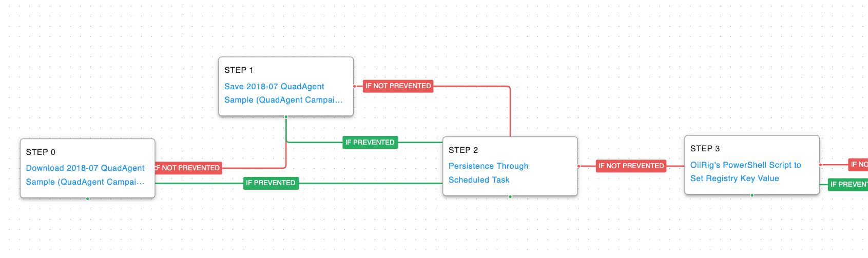 This Attack Graph is based on a 2018 Palo Alto Networks report where OilRig used a PowerShell-based backdoor known as QuadAgent against Technology Service providers and Government agencies.