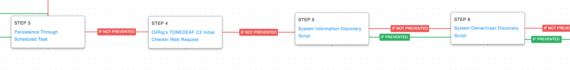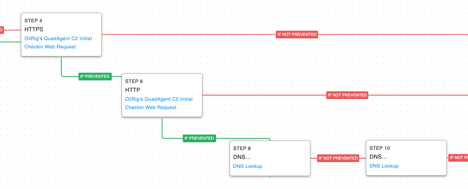 Fallback Channels (T1008): The attack graph will try each of the three possible communication protocols if the original tries are blocked.