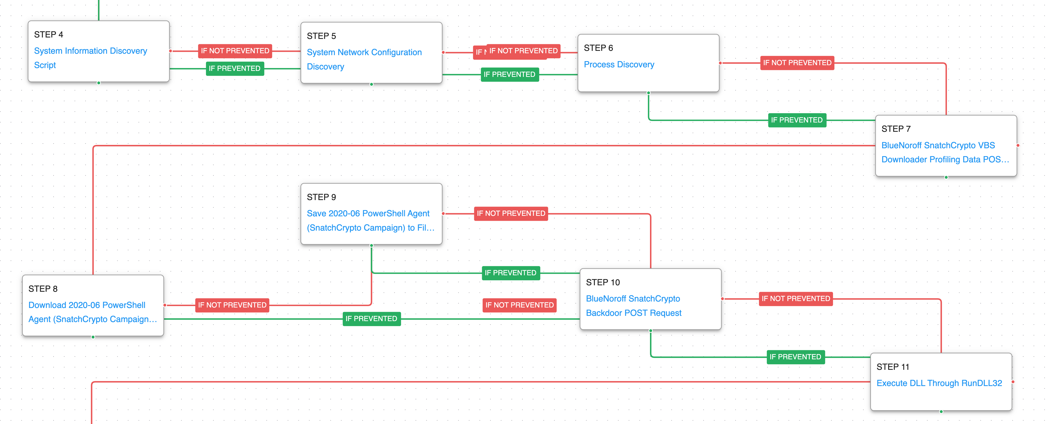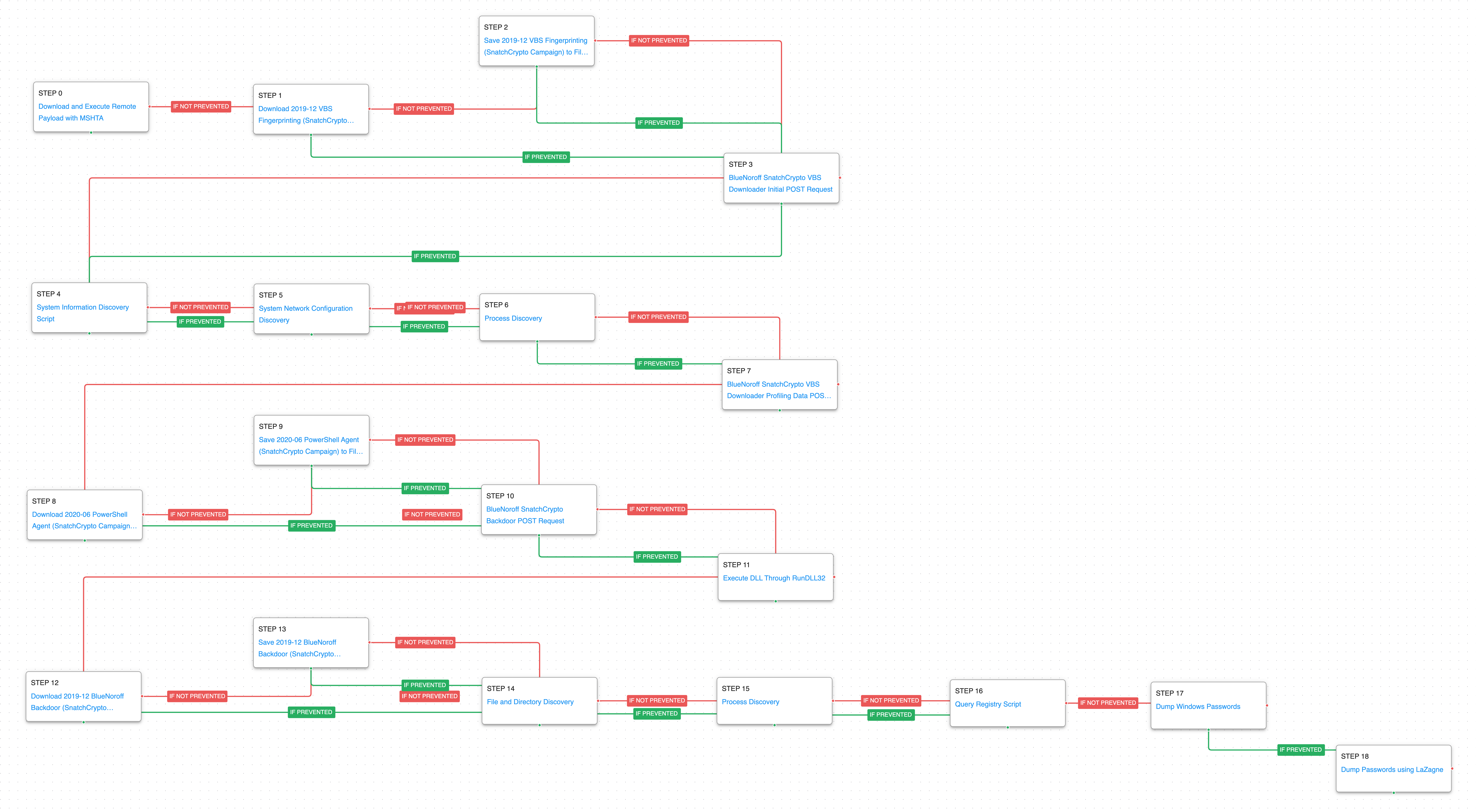There were two techniques observed in the SnatchCrypto campaign that were used for the initial infection and this attack graph emulates the behaviors starting from a malicious LNK file that used MSHTA to download and execute a remote payload.