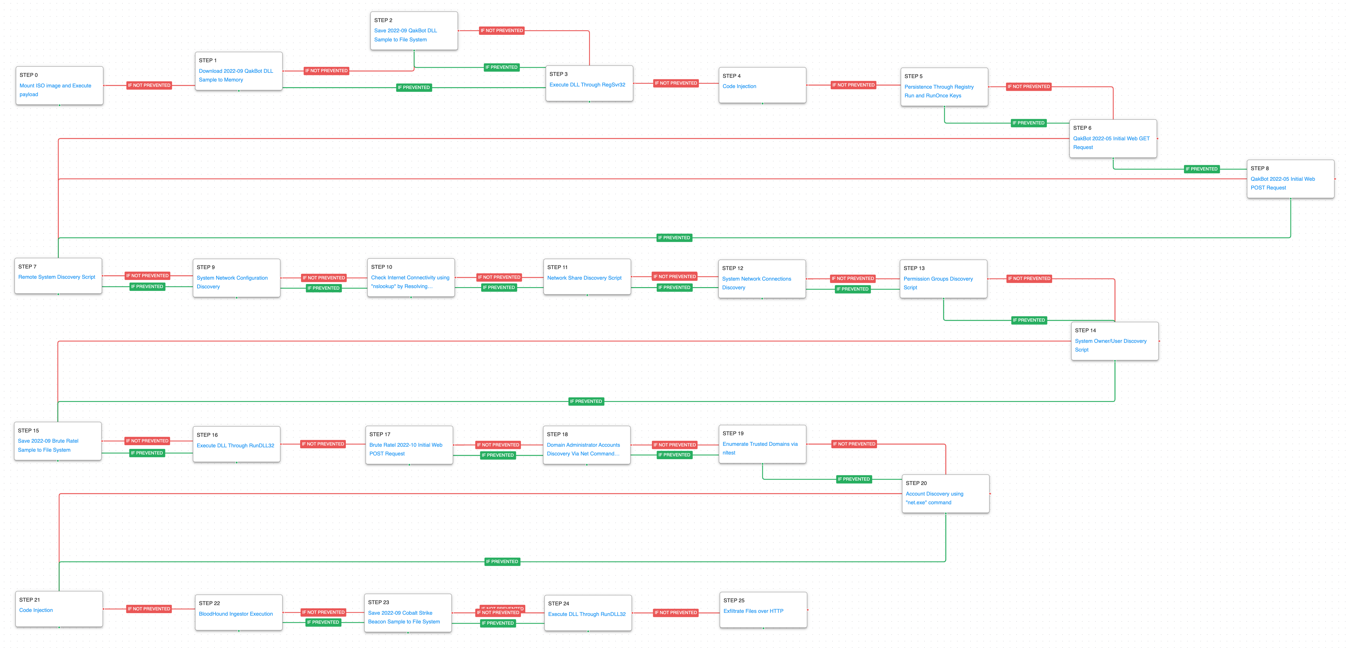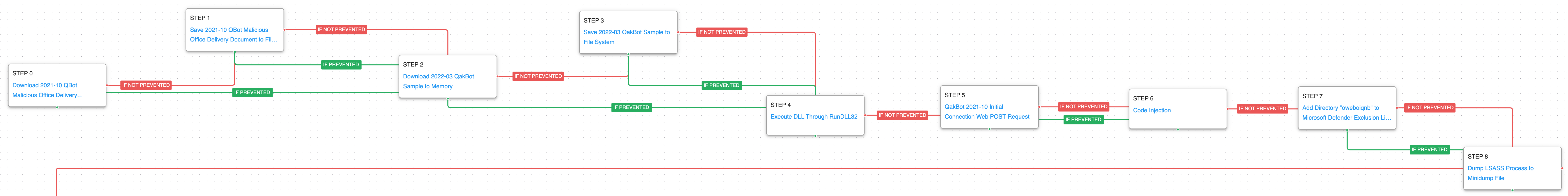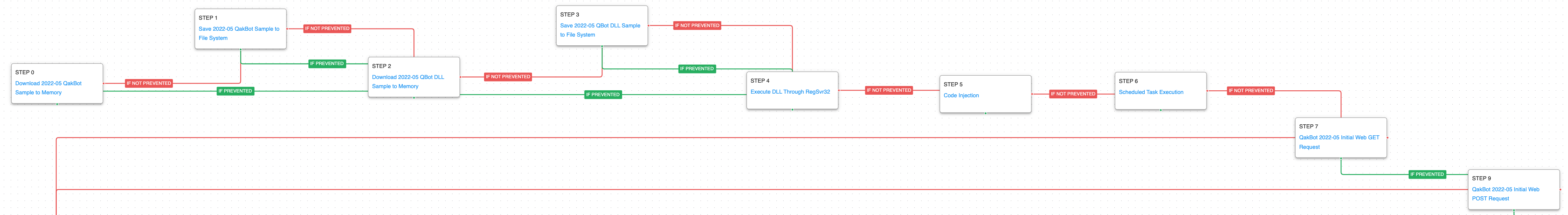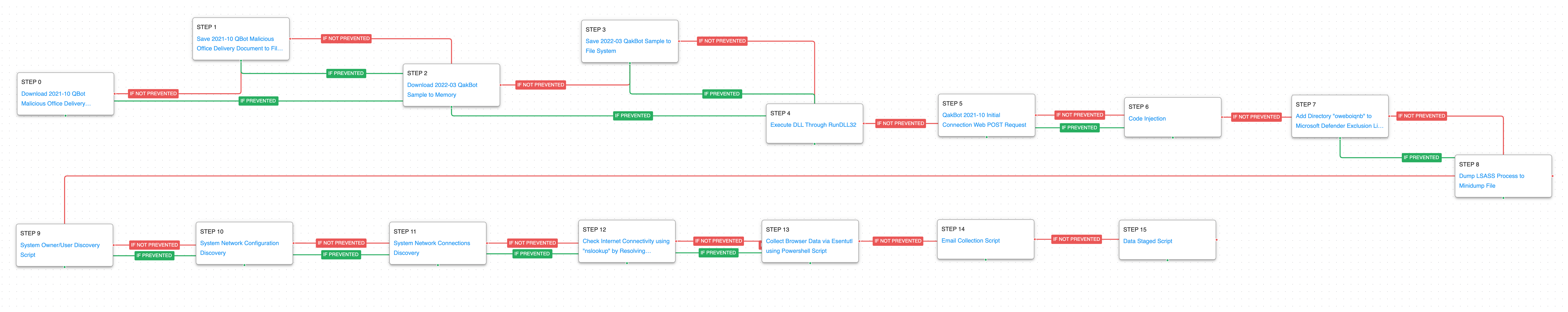 - Evaluate security control performance against multiple threat actors that all begin their campaigns with QakBot.