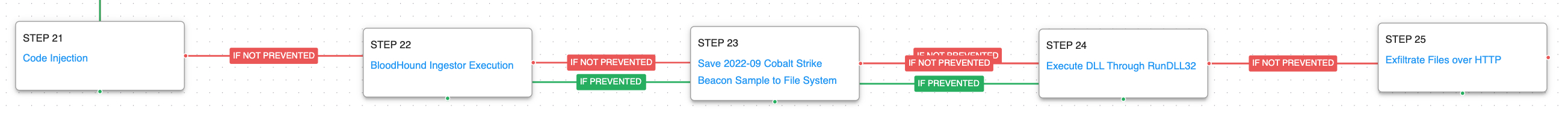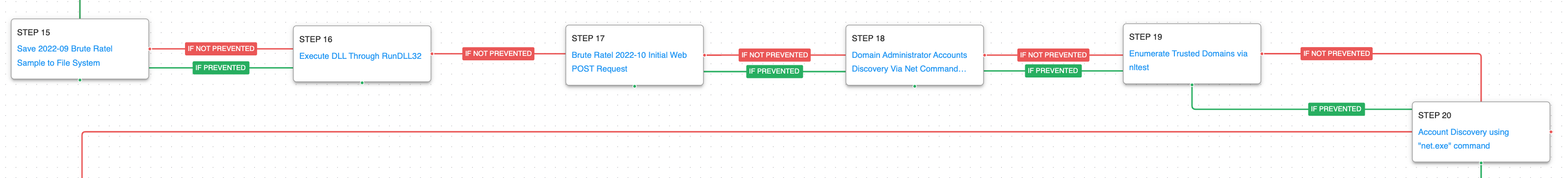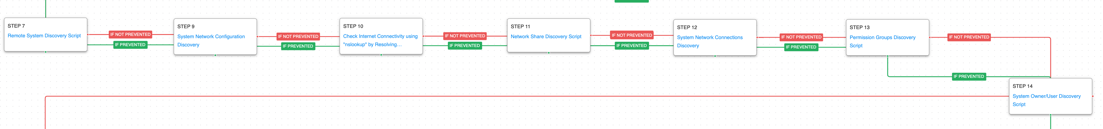 The next phase of the attack is similar to the previous attack graph where QakBot is used to execute native discovery commands to gather intelligence about the victim’s environment.