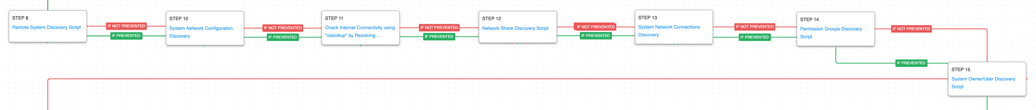 This is followed by the execution of the techniques associated with the discovery phase of the attack. The actor is attempting to gain additional knowledge about their victim’s environment before moving onto the next stage of malware.