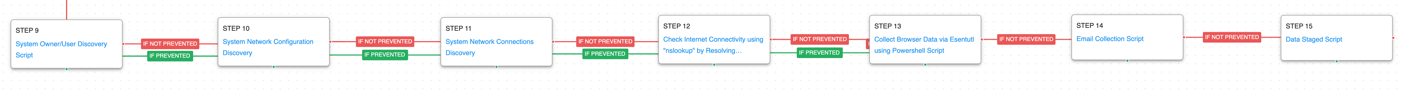 The attack graph then begins the common QakBot discovery phase before attempting to collect browser data including bookmarks and saved passwords. E-mail archives are then harvested and staged for data exfiltration.