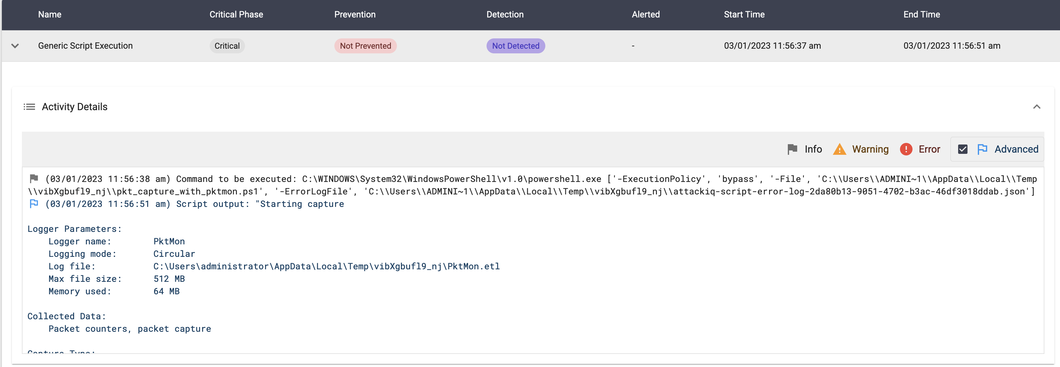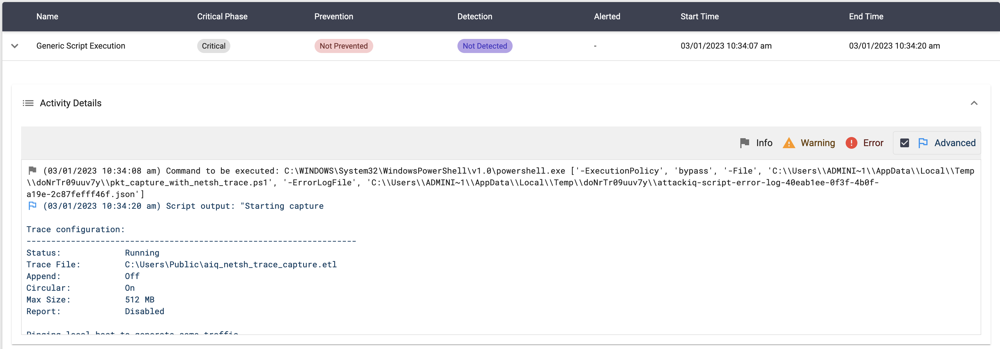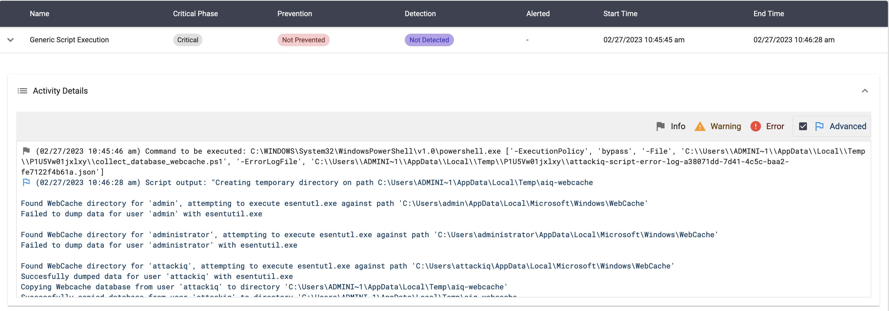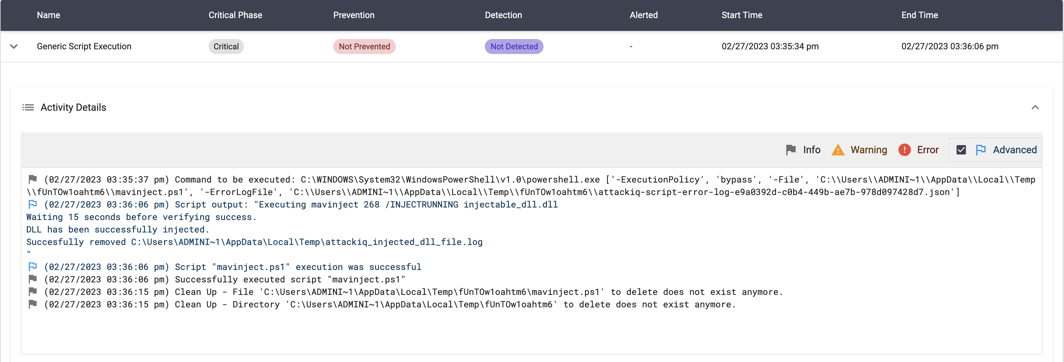 The scenario will be marked as Not Prevented if the file exists en the temp folder.