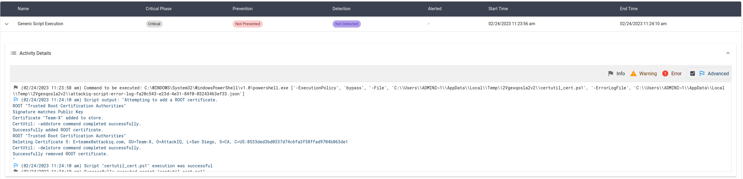 The scenario will be marked as Not Prevented if it is capable of adding the certificate.