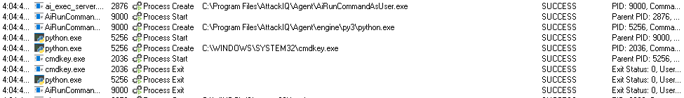 ai_exec_server.exe → AiRunCommandAsUser.exe (if running under user privileges) → python.exe → cmdkey.exe