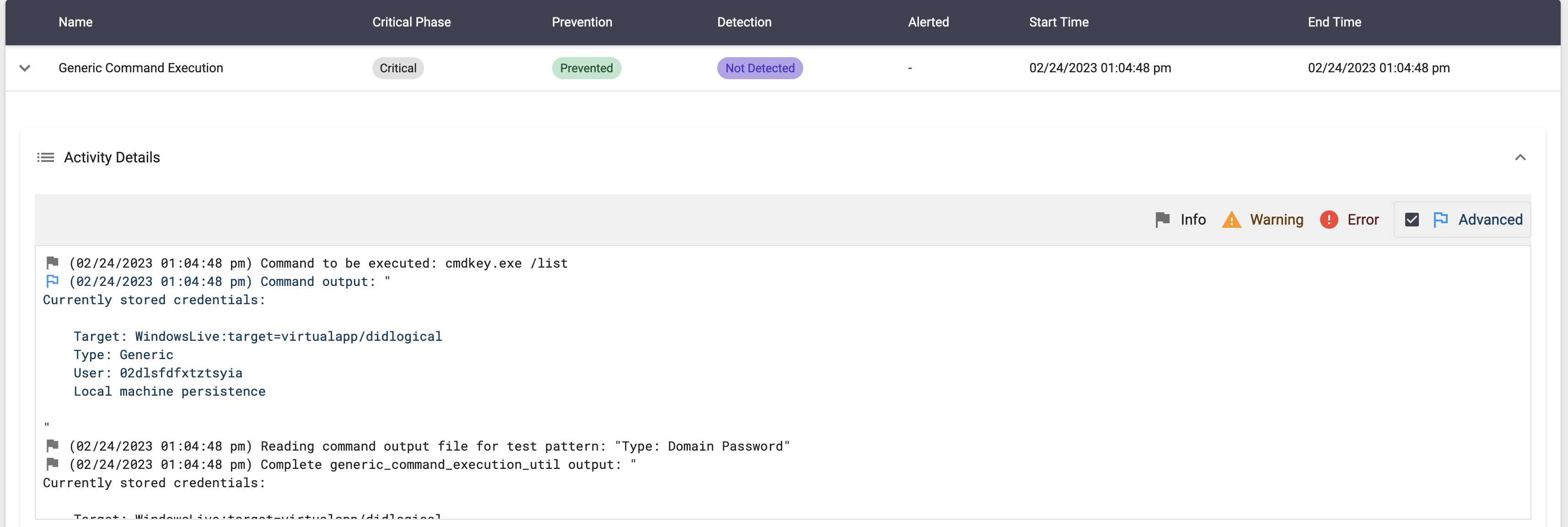 The scenario will be marked as Not Prevented if there are cached credentials of the type Domain Password.