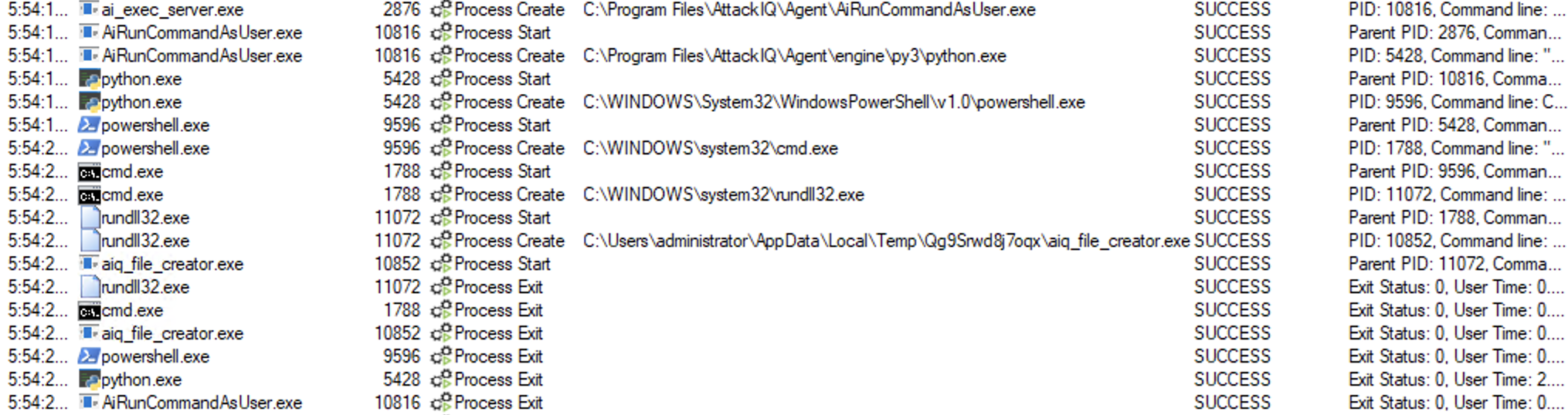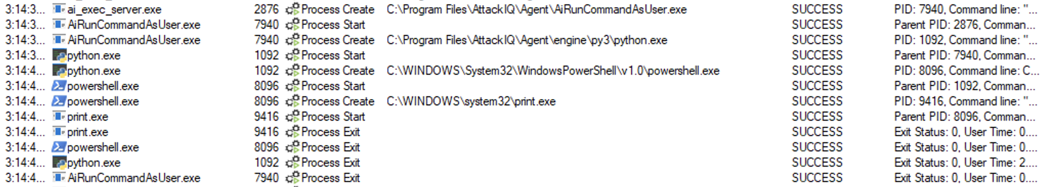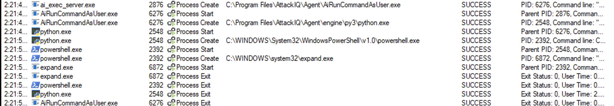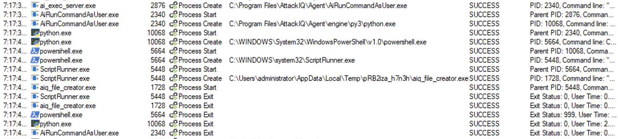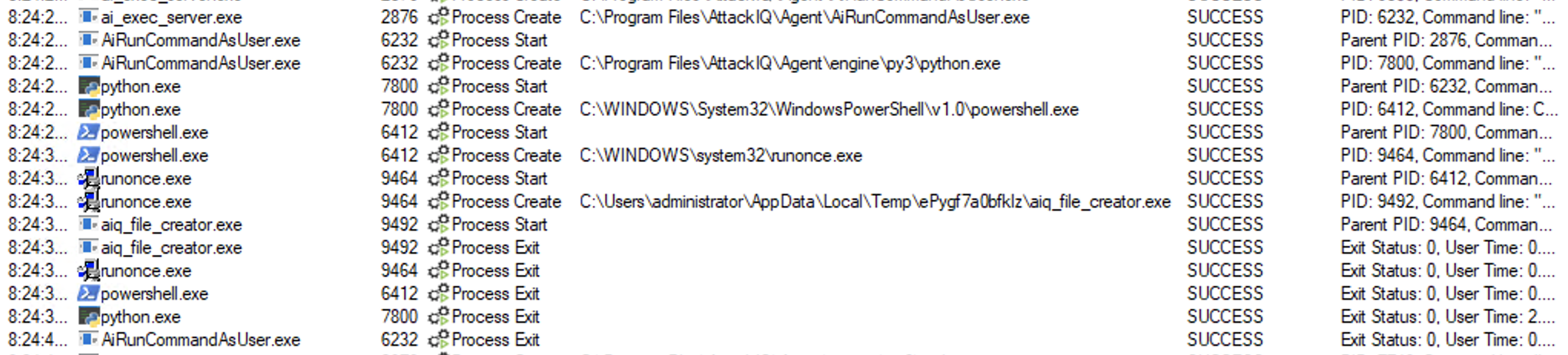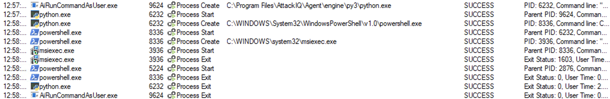 ai_exec_server.exe → AiRunCommandAsUser.exe (if running under user privileges) → python.exe → powershell.exe → tttracer.exe → aiq_file_creator.exe
