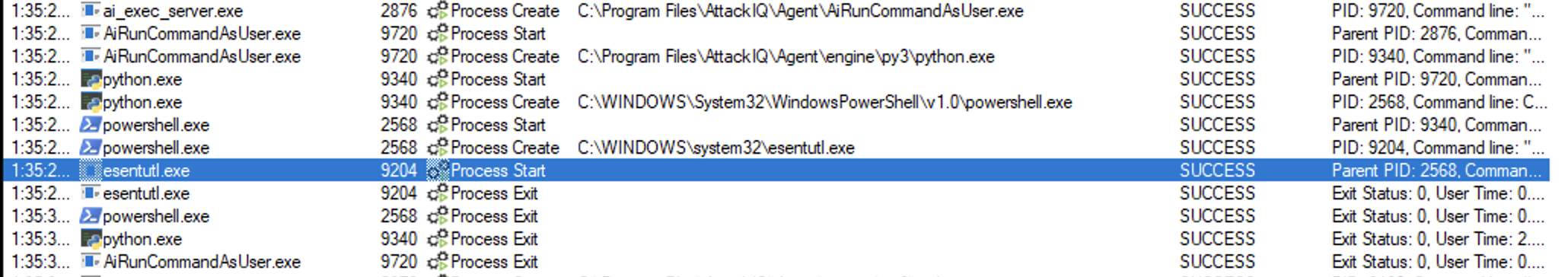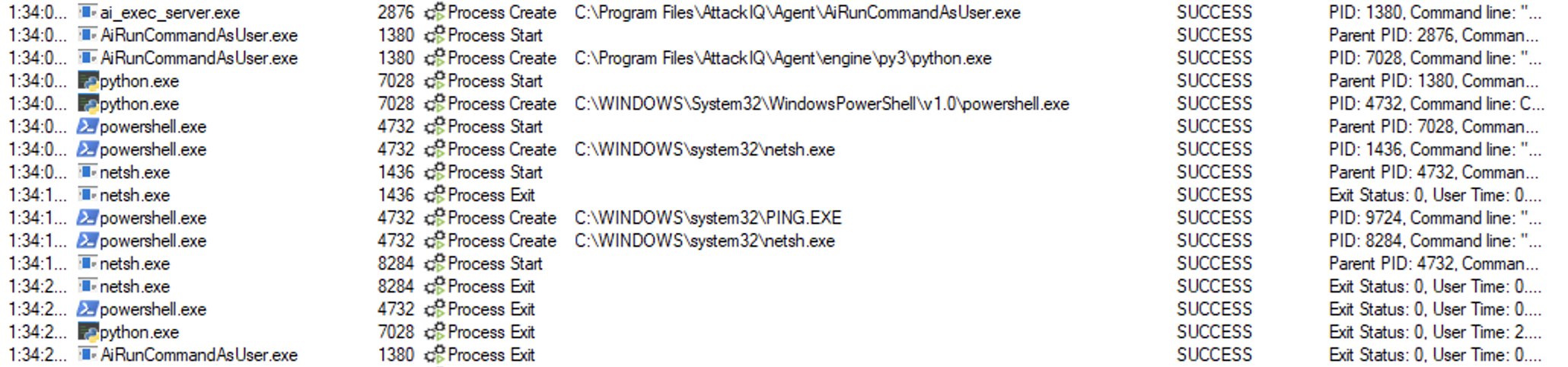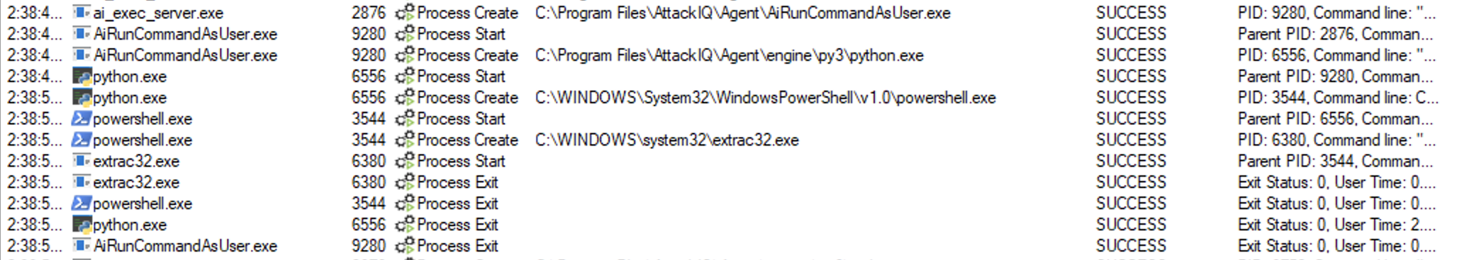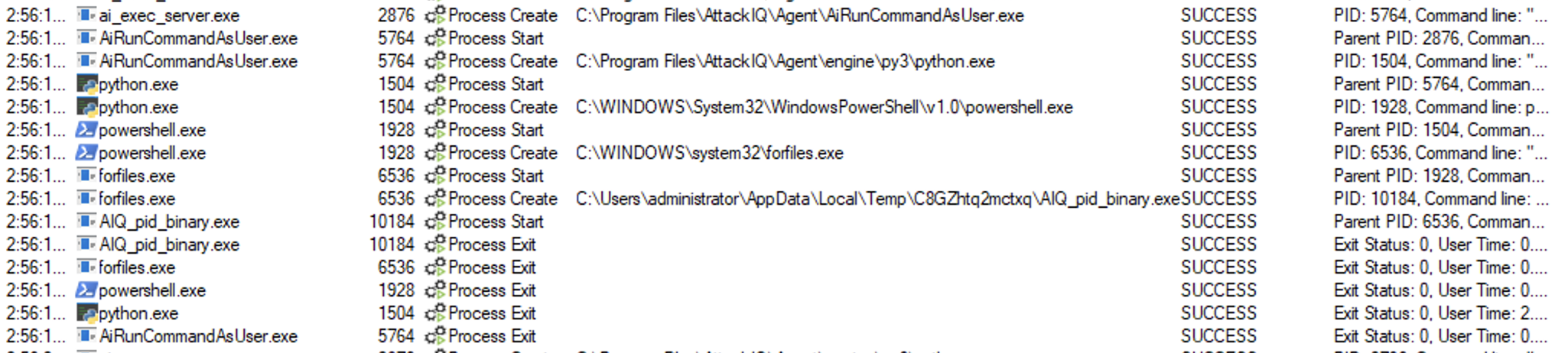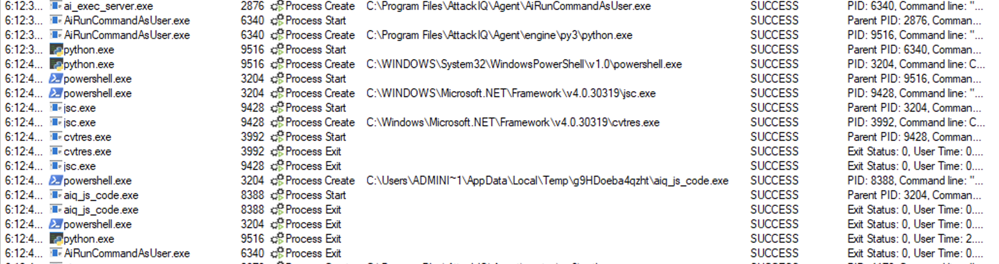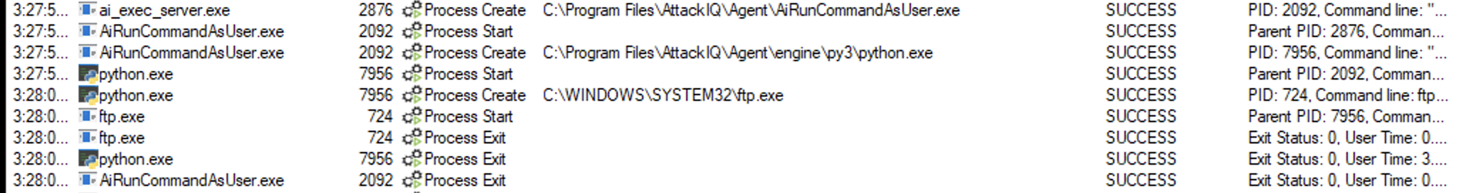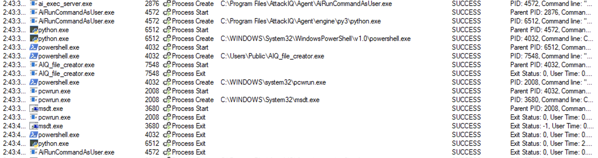 ai_exec_server.exe → AiRunCommandAsUser.exe (if running under user privileges) → python.exe → powershell.exe → tttracer.exe → aiq_file_creator.exe