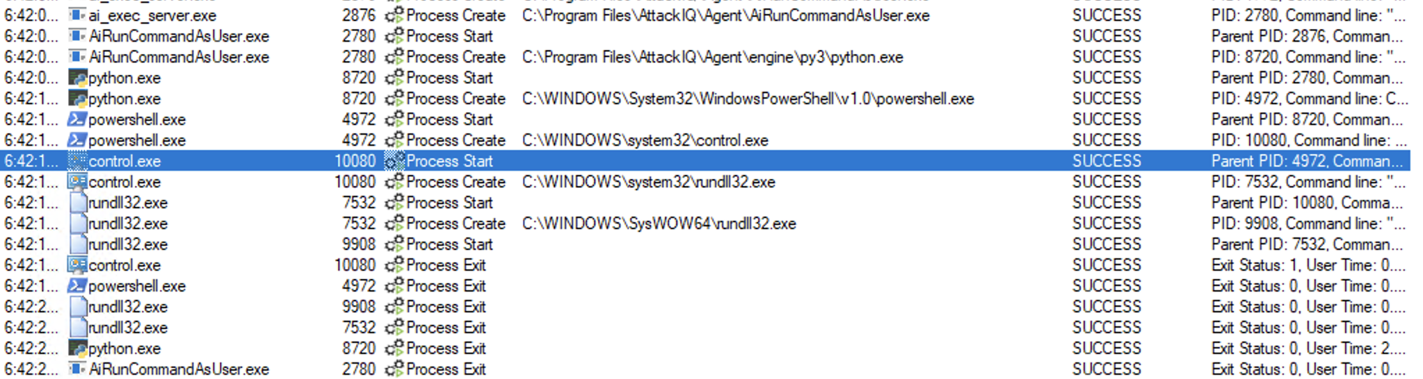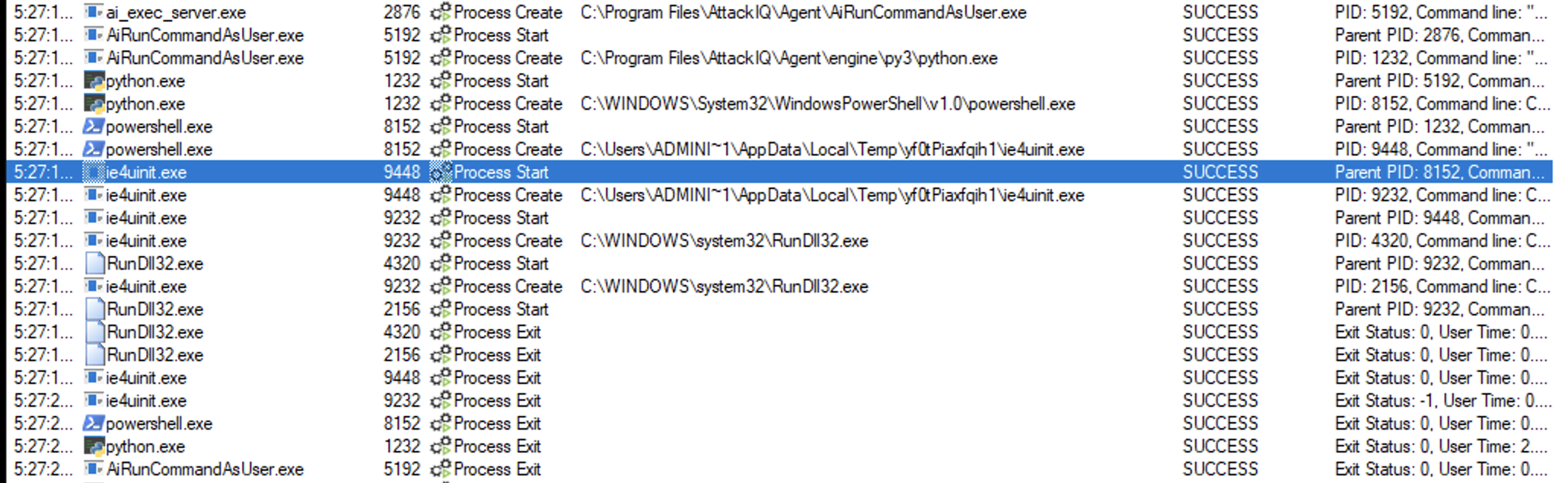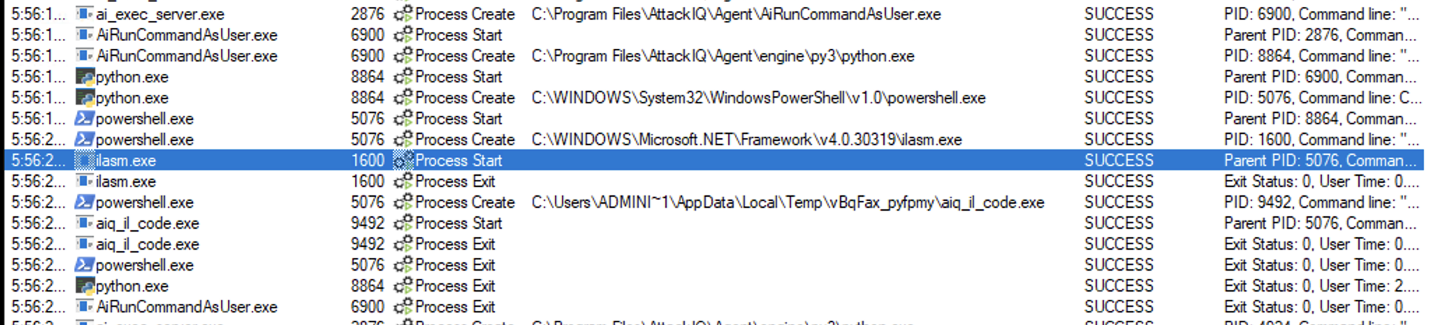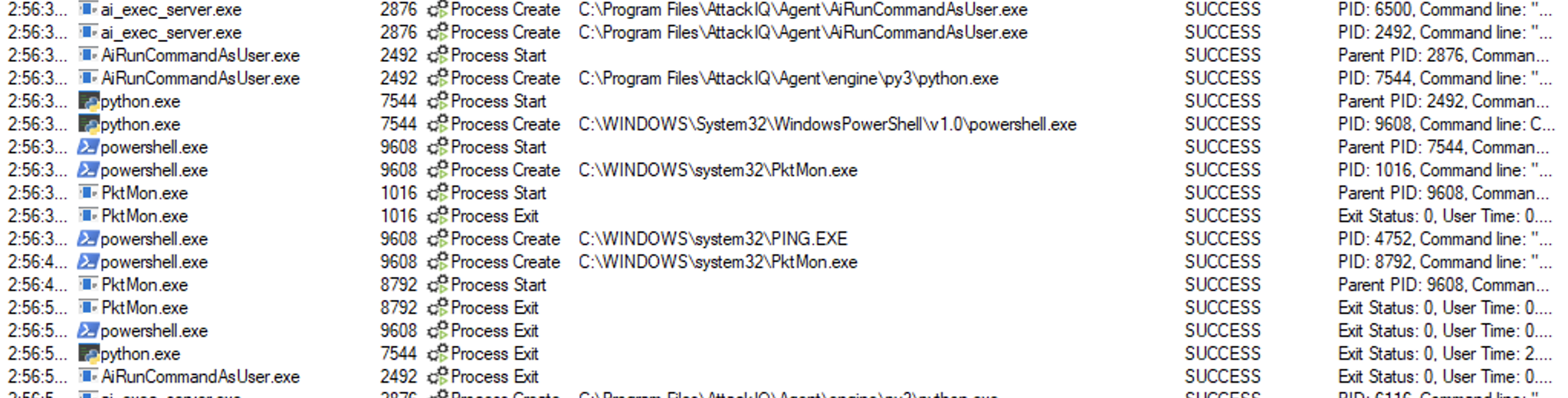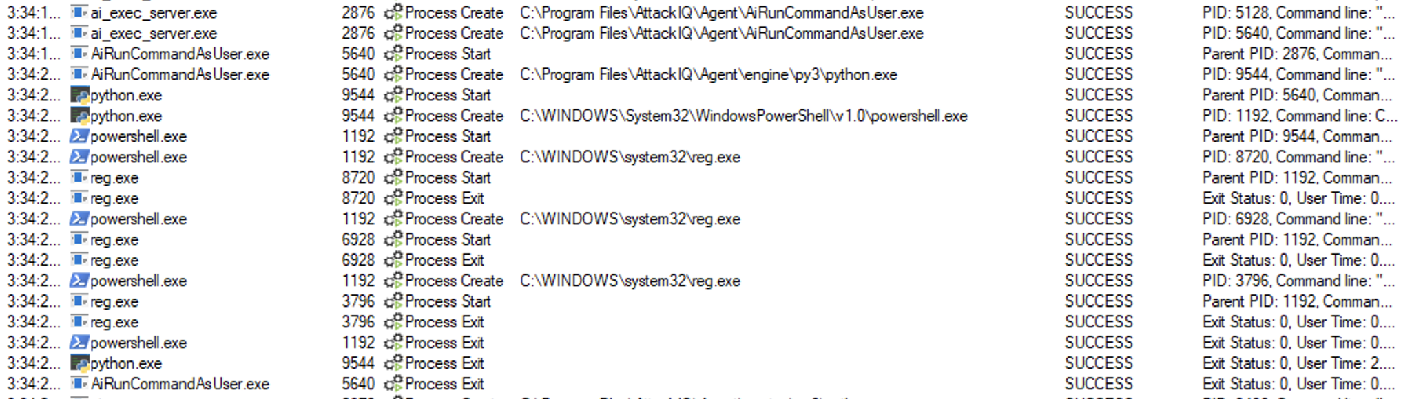 ai_exec_server.exe → AiRunCommandAsUser.exe (if running under user privileges) → python.exe → powershell.exe → tttracer.exe → aiq_file_creator.exe