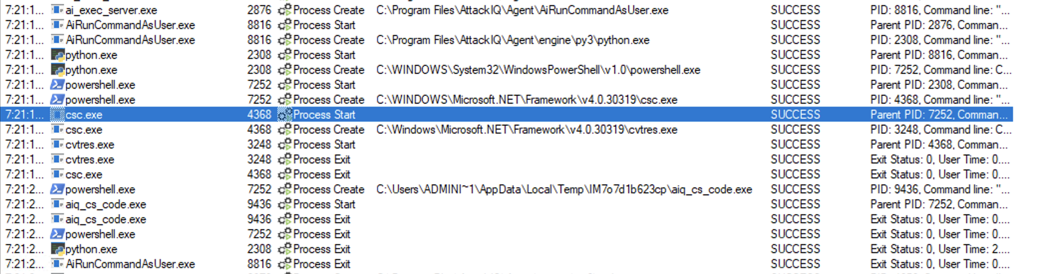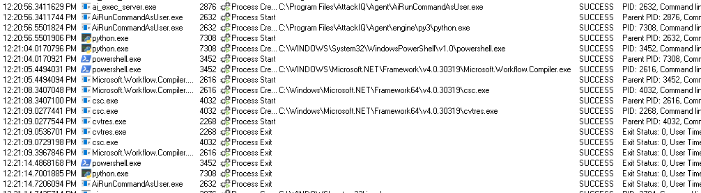 ai_exec_server.exe → AiRunCommandAsUser.exe (if running under user privileges) → python.exe → powershell.exe → csc.exe → cvtres.exe