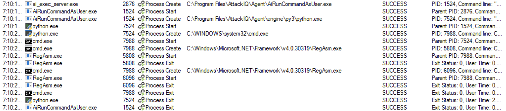 ai_exec_server.exe → AiRunCommandAsUser.exe (if running under user privileges) → python.exe → cmd.exe → regasm.exe