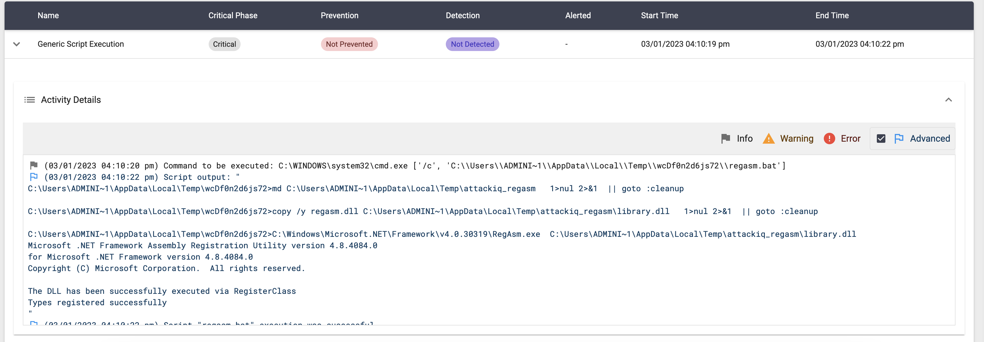 regasm.exe %temp%\attackiq_regasm\library.dll