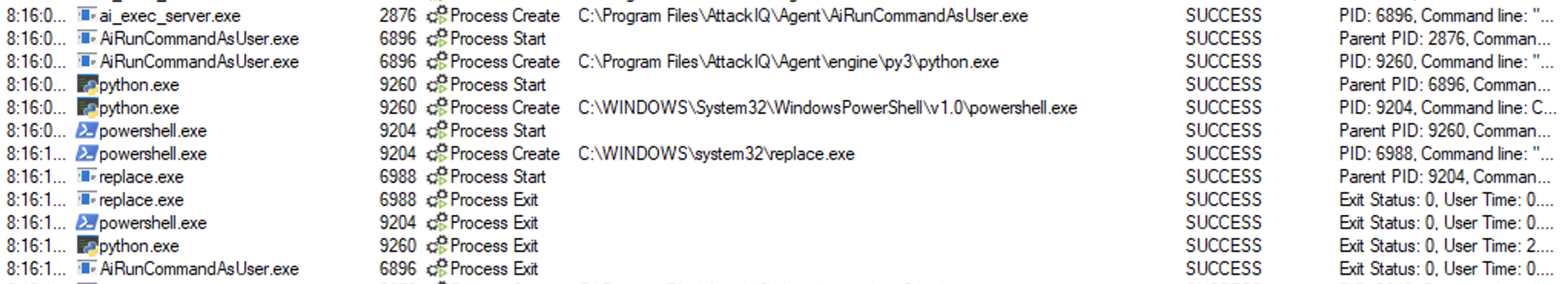 ai_exec_server.exe → AiRunCommandAsUser.exe (if running under user privileges) → python.exe → powershell.exe → replace.exe