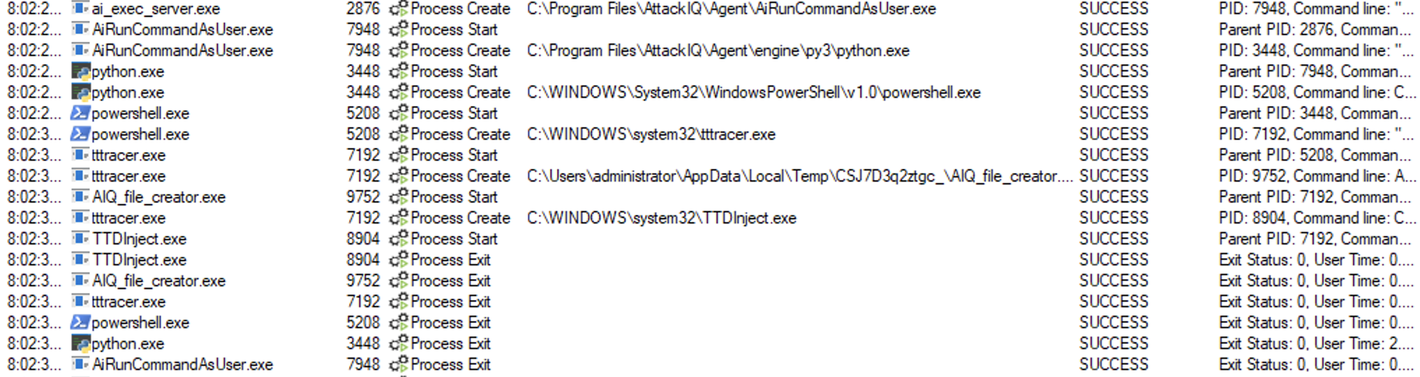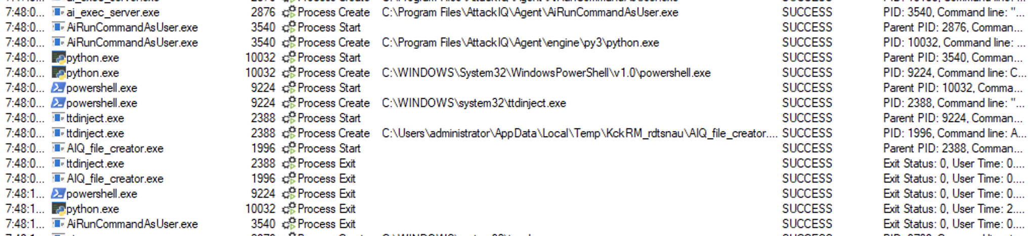 ai_exec_server.exe → AiRunCommandAsUser.exe (if running under user privileges) → python.exe → powershell.exe → ttdinject.exe → aiq_file_creator.exe