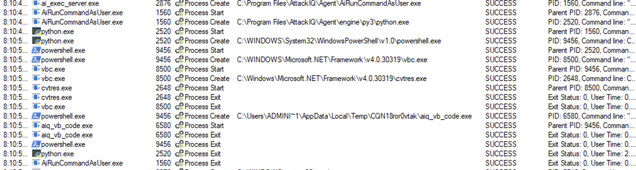 ai_exec_server.exe → AiRunCommandAsUser.exe (if running under user privileges) → python.exe → powershell.exe → vbc.exe → cvtres.exe
