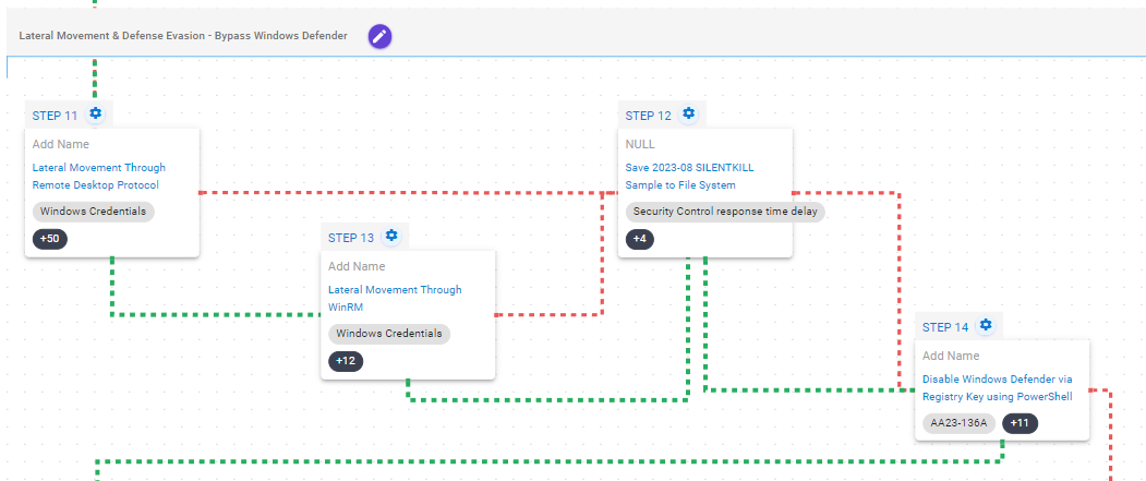 After SILENTKILL is deployed and executed, the emulation will attempt to disable Windows Defender by modifying the DisableAntiSpyware registry key. In case of being unable to do so, the emulation will add extensions to Defender’s exclusion list, with the objective of avoiding detection.