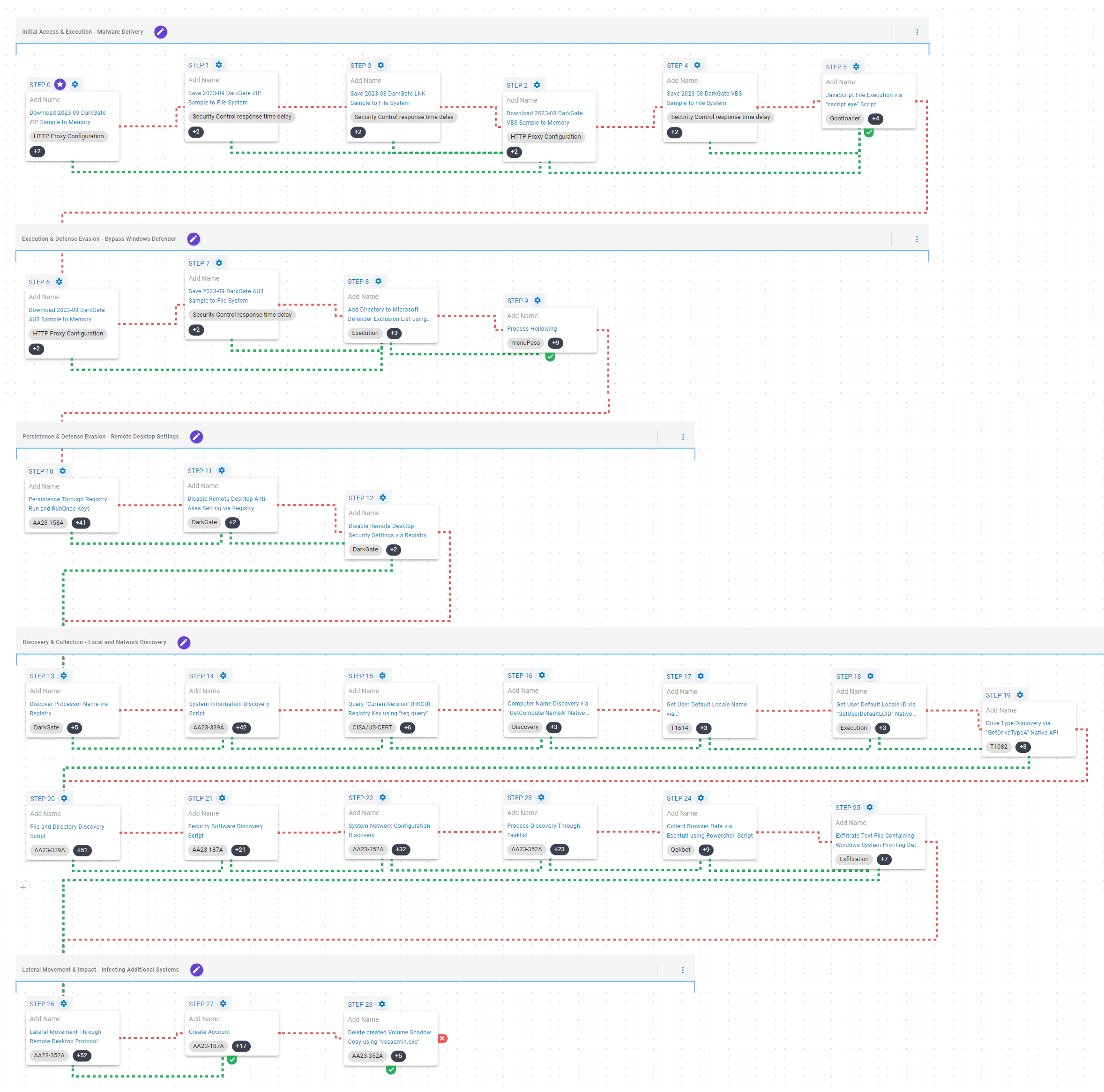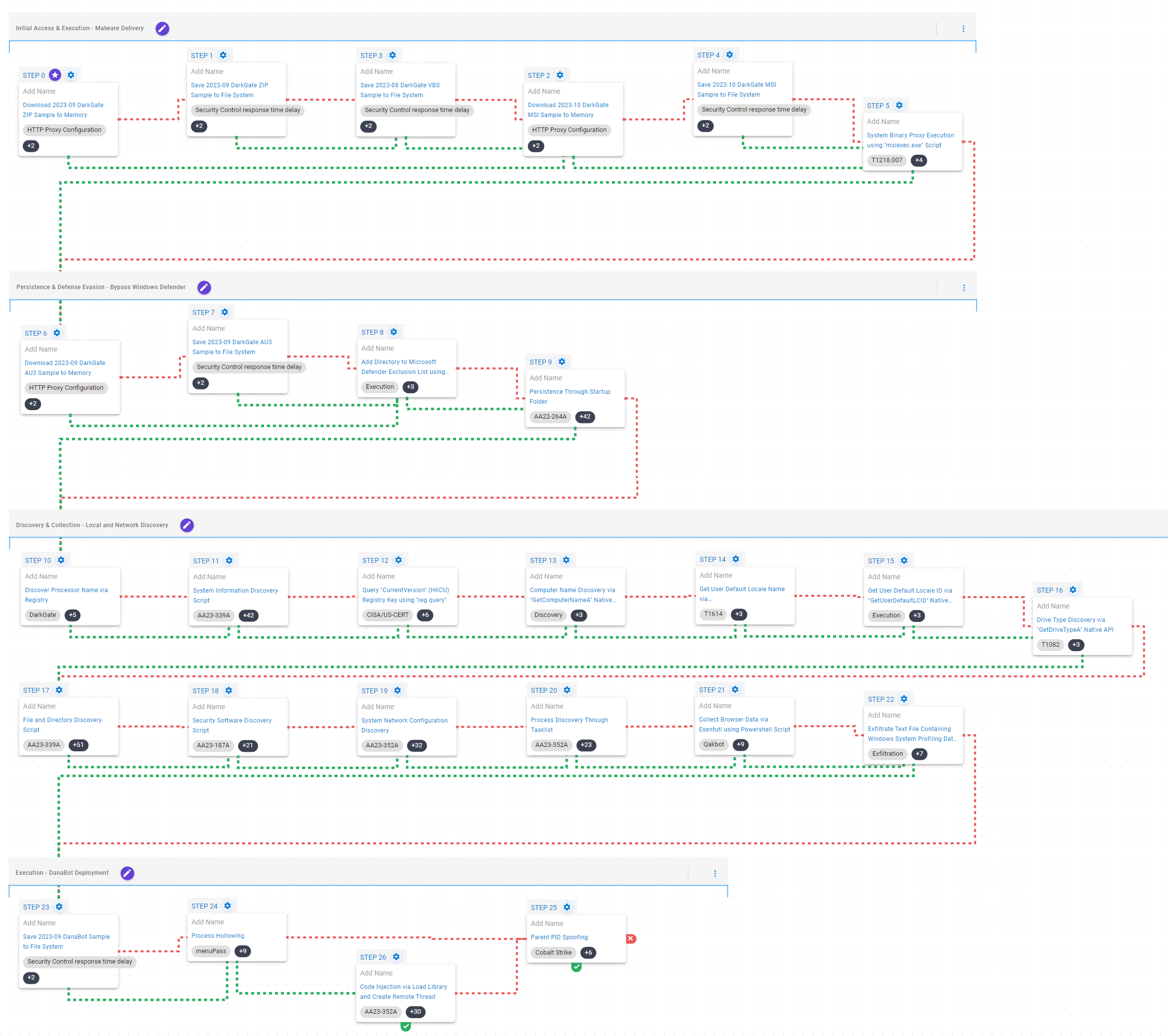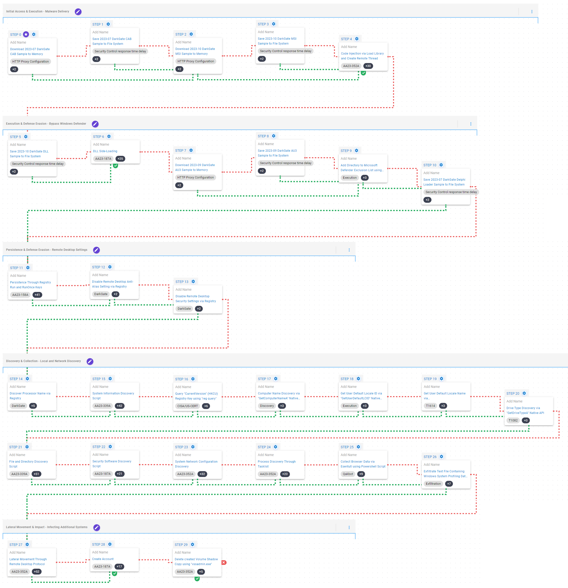 With so many different techniques used by DarkGate’s operators, it can be difficult to know which to prioritize for prevention and detection assessment. AttackIQ recommends first focusing on the following techniques emulated in our scenarios before moving on to the remaining techniques.