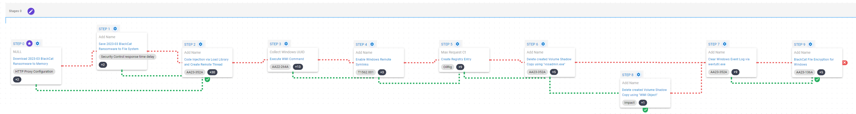 This Attack Graph seeks to emulate the sequence of behavior associated with the deployment of BlackCat on a compromised system, intending to provide customers with opportunities to prevent and/or detect a compromise in progress.