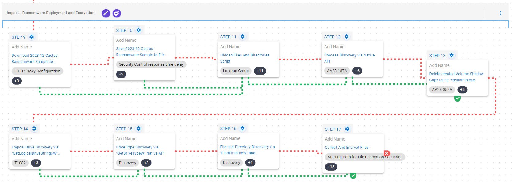 In addition to the released assessment template, AttackIQ recommends the following scenario to extend the emulation of the capabilities exhibited by Cactus ransomware.