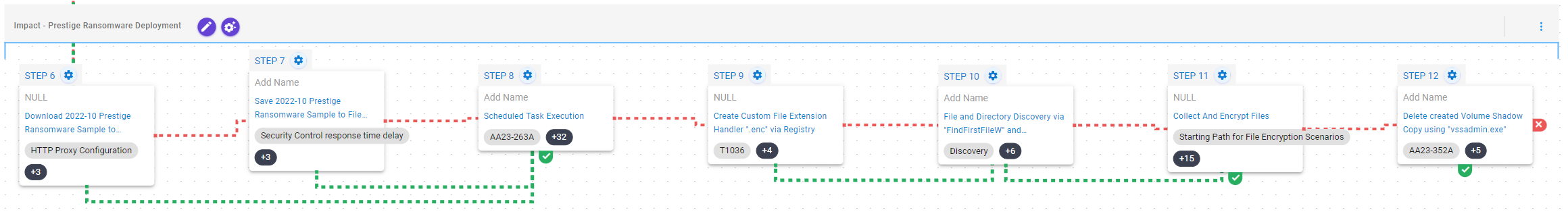 In addition to the released assessment template, AttackIQ recommends the following scenario to extend the emulation of the capabilities exhibited by Prestige ransomware.