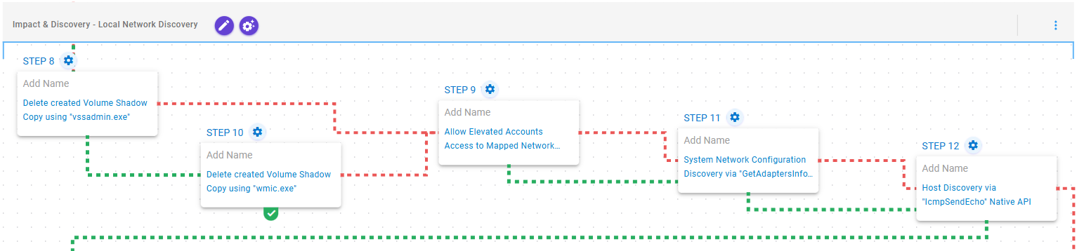 Inhibit System Recovery (T1490): This scenario executes the vssadmin.exe utility to delete a recent Volume Shadow Copy created by the assessment template.