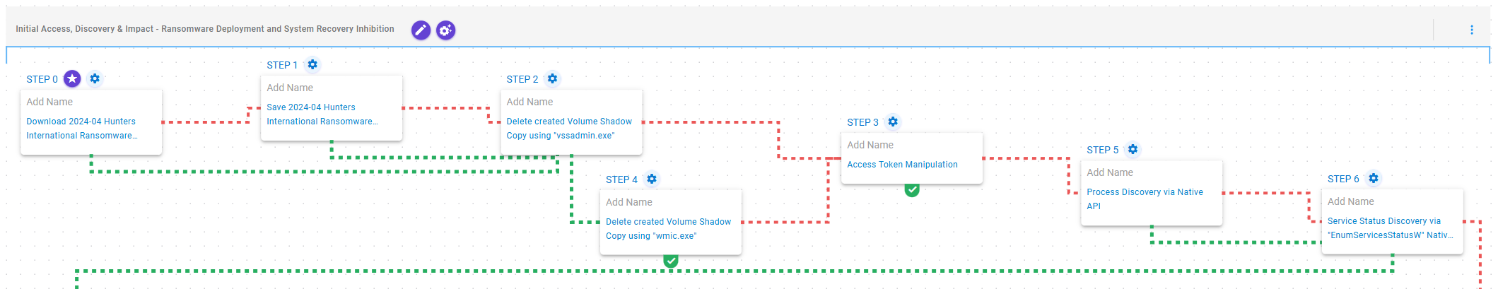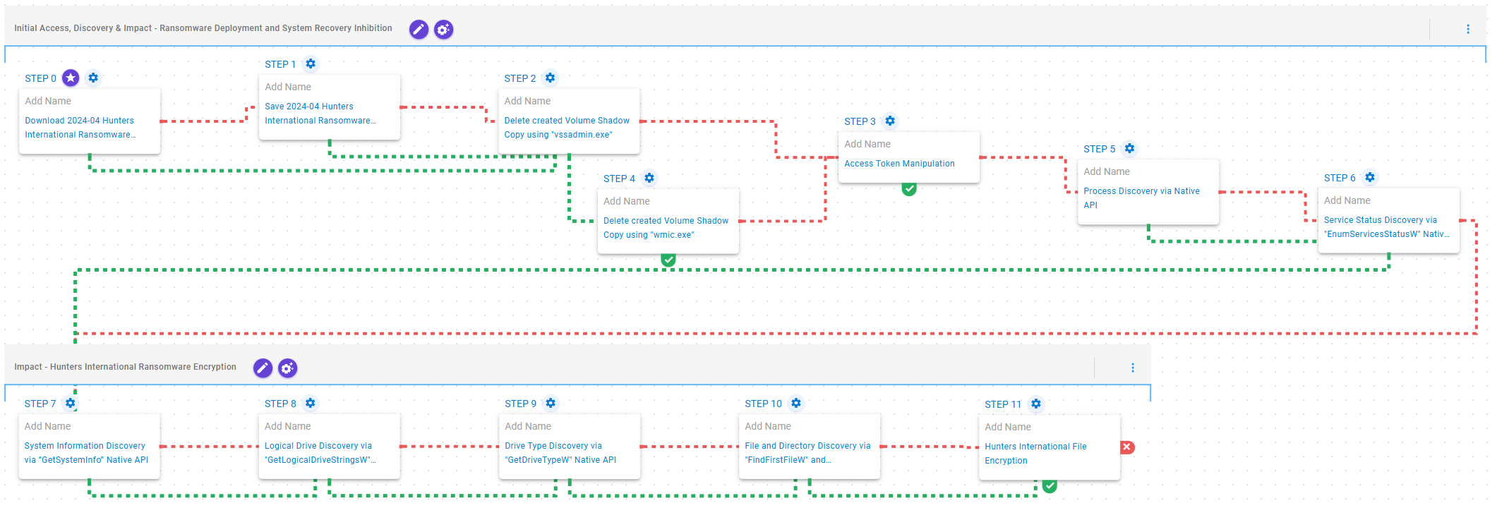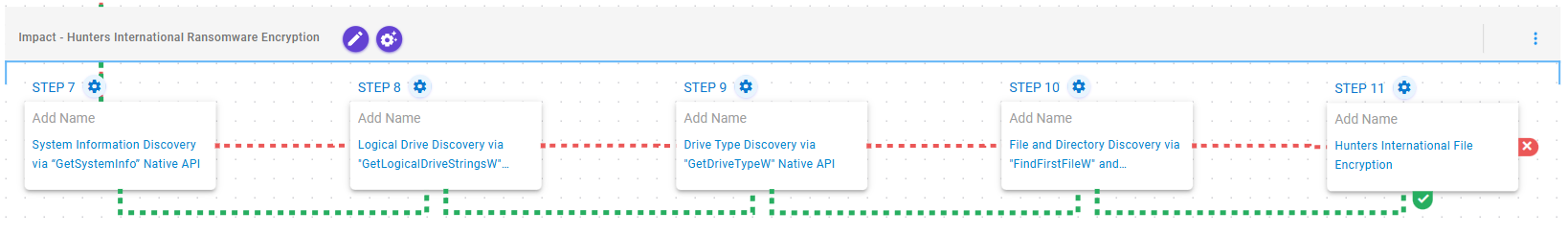 This attack graph seeks to emulate the sequence of behaviors associated with the deployment of Hunters International ransomware on a compromised system with the intent of providing customers with opportunities to prevent and/or detect a compromise in progress.