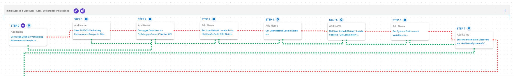 System Information Discovery (T1082): This scenario executes the GetNativeSystemInfo Native API call to retrieve information associated to the system.