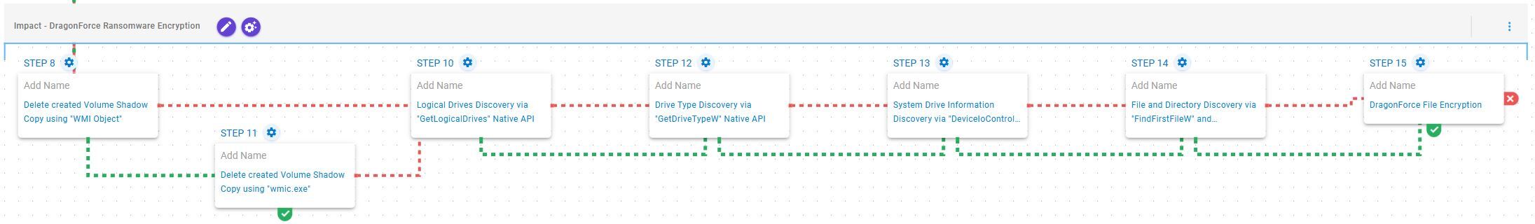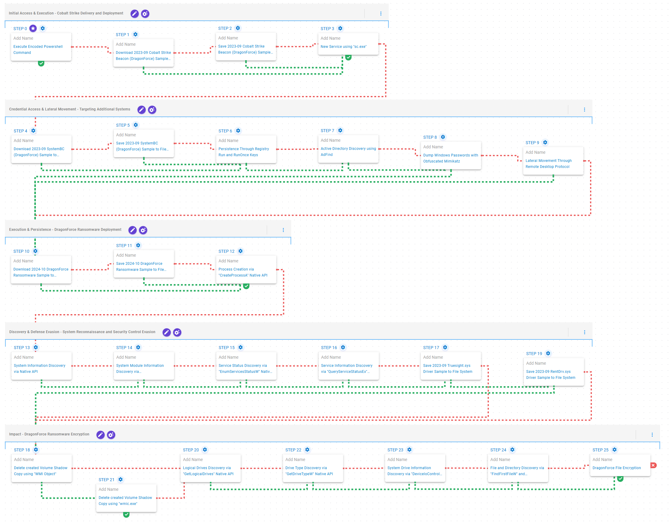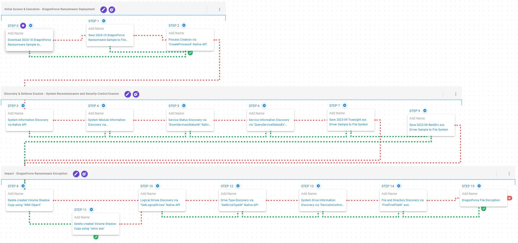 The subsequent stages of the emulation correspond to those comprising the following microemulation of DragonForce ransomware.