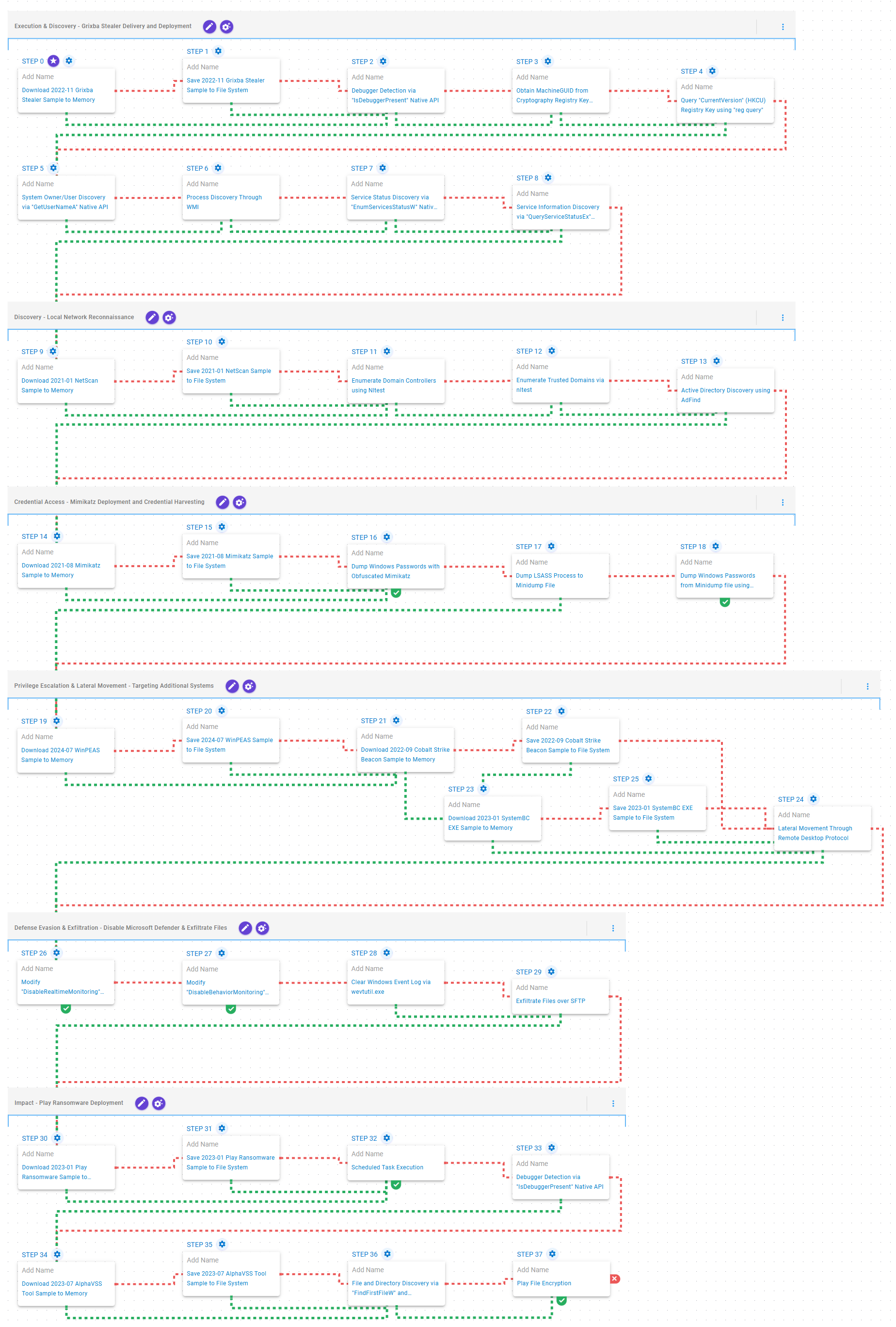 This attack graph emulates the different Tactics, Techniques, and Procedures (TTPs) observed in multiple activities associated with Play ransomware.