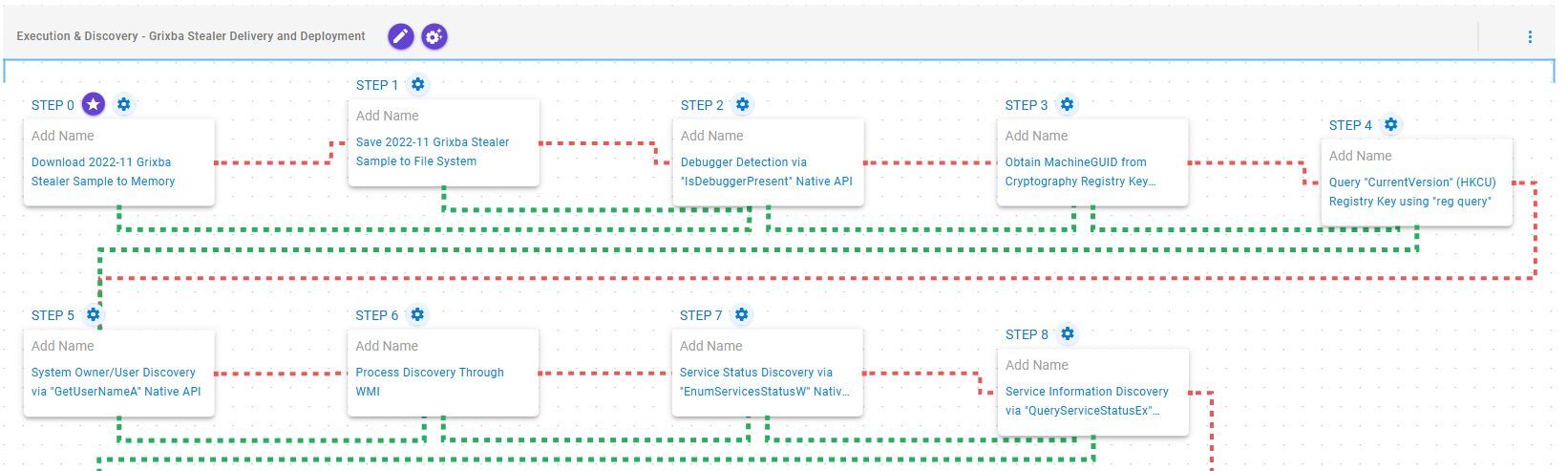 Ingress Tool Transfer (T1105): This scenario downloads to memory and saves to disk in independent scenarios to test network and endpoint controls and their ability to prevent the delivery of known Grixba samples.