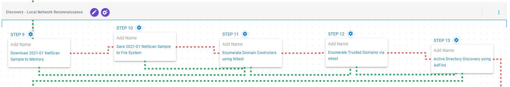 Remote System Discovery (T1018): This scenario leverages the AdFind utility to discover details about the Active Directory configuration including accounts, groups, computers, and subnets.