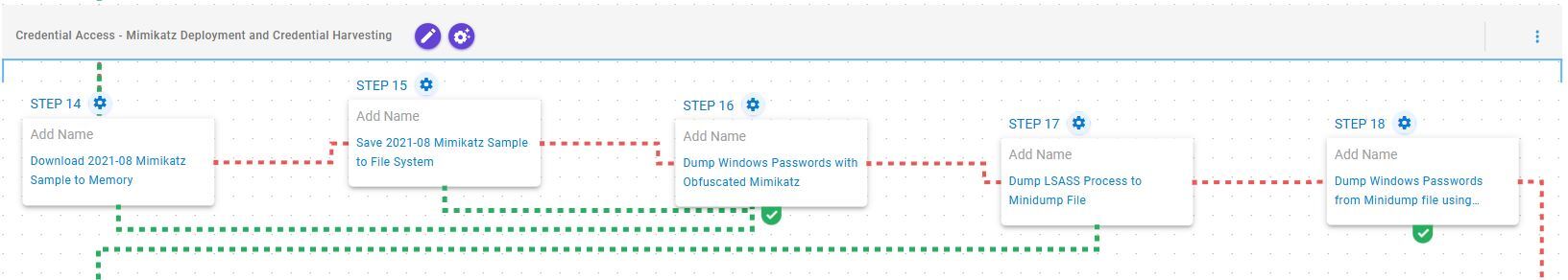 Added! OS Credential Dumping: LSASS Memory (T1003.001): This scenario extracts credentials using Mimikatz from a specified MiniDump file.