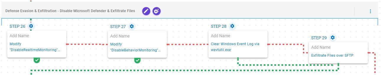 Indicator Removal: Clear Windows Event Logs (T1070.001): The scenario executes the wevtutil.exe utility to delete Windows event logs from the system.