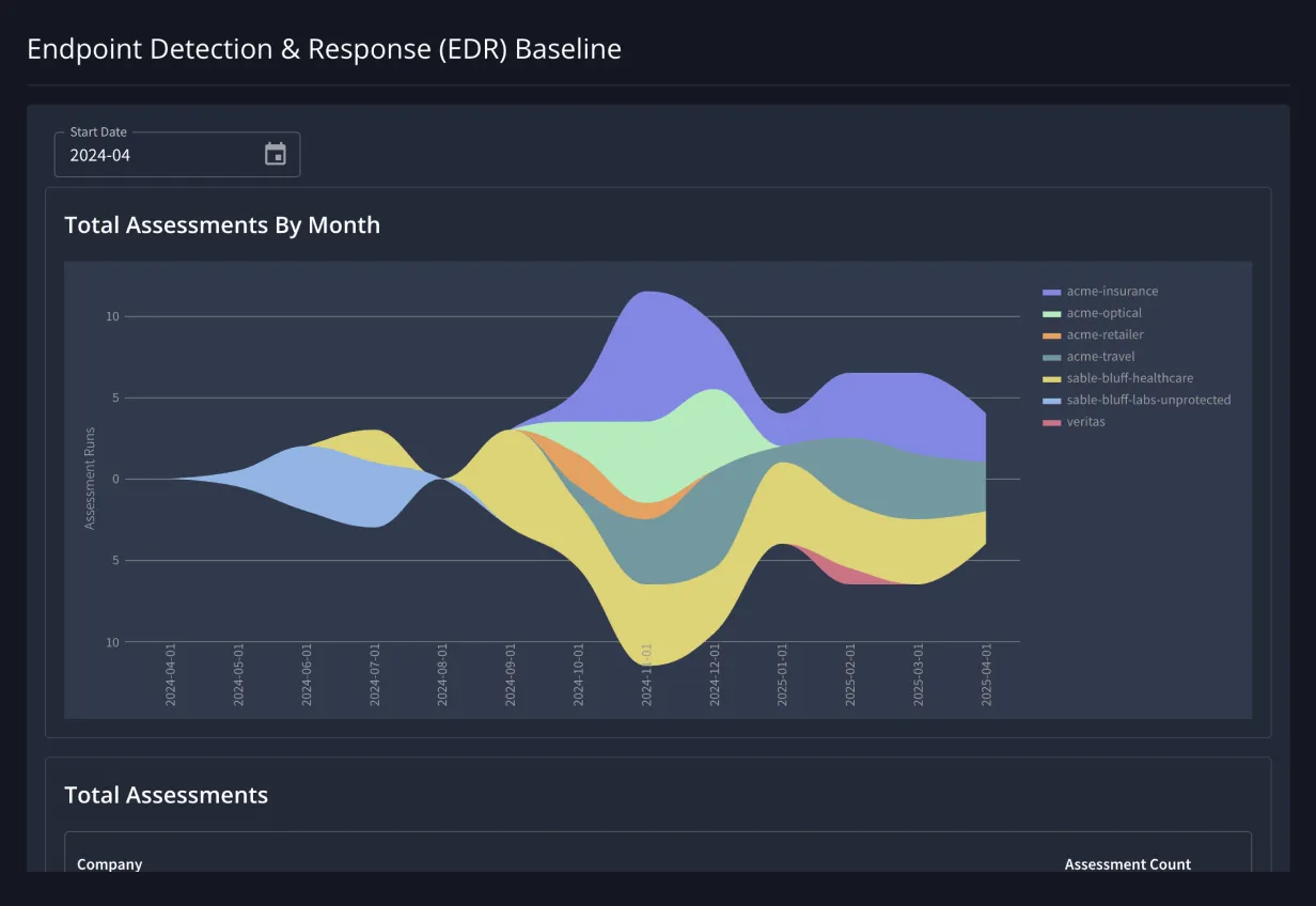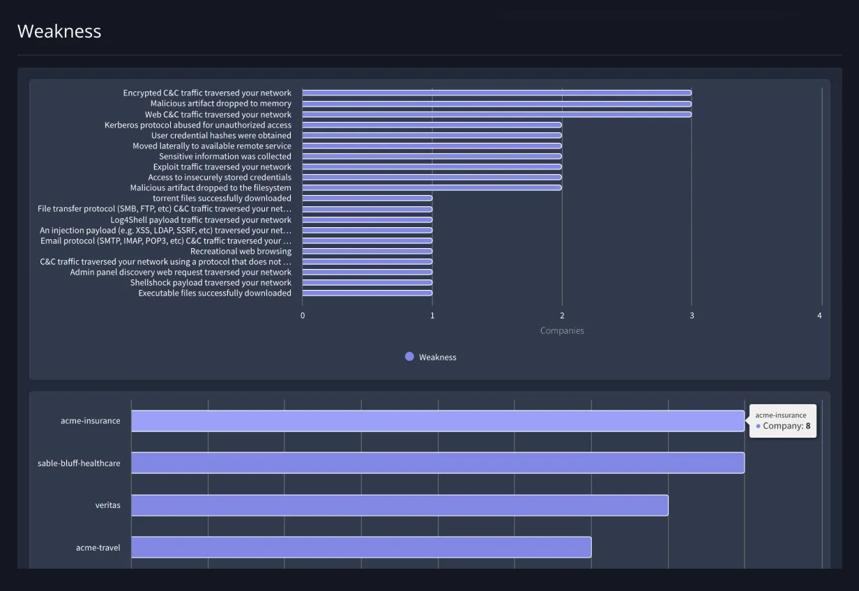 - Compare performance across business units to identify security gaps